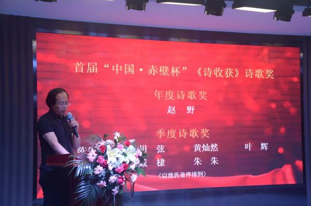 5月18日,首届“中国•赤壁杯”《诗收获》诗歌奖颁奖典礼在湖北赤壁举行,备受关注的《诗收获》“年度诗歌奖”由诗人赵野摘得,诗人陈先发、胡弦、黄灿然、余怒、叶辉、臧棣、朱朱分别获得“季度诗歌奖”。