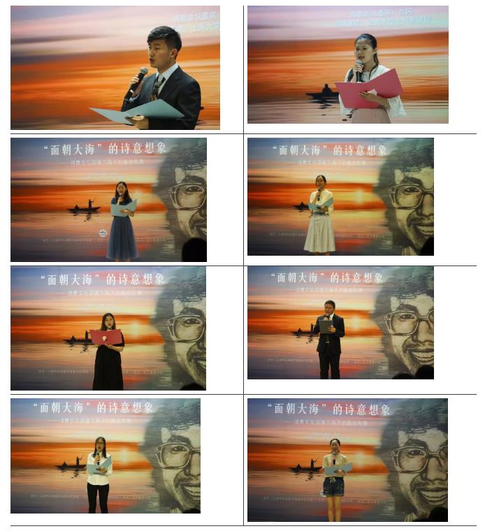 整场讲座信息量很大,见解独特,就海子其人、诗歌和自杀都给出自己的观察,台下的大学生听完后意犹未尽,在提问环节结束后围着古冈老师交流,可见海子在青年学生中依然存有巨大影响力,他们将怀着对诗歌的无限热爱继续前行在阅读海子的进程中,不断靠近更真实的海子。讲座结束后,上海大学生诗歌联盟的8位学生深情朗诵了海子的诗歌,为本次活动画上了一个圆满的句号。