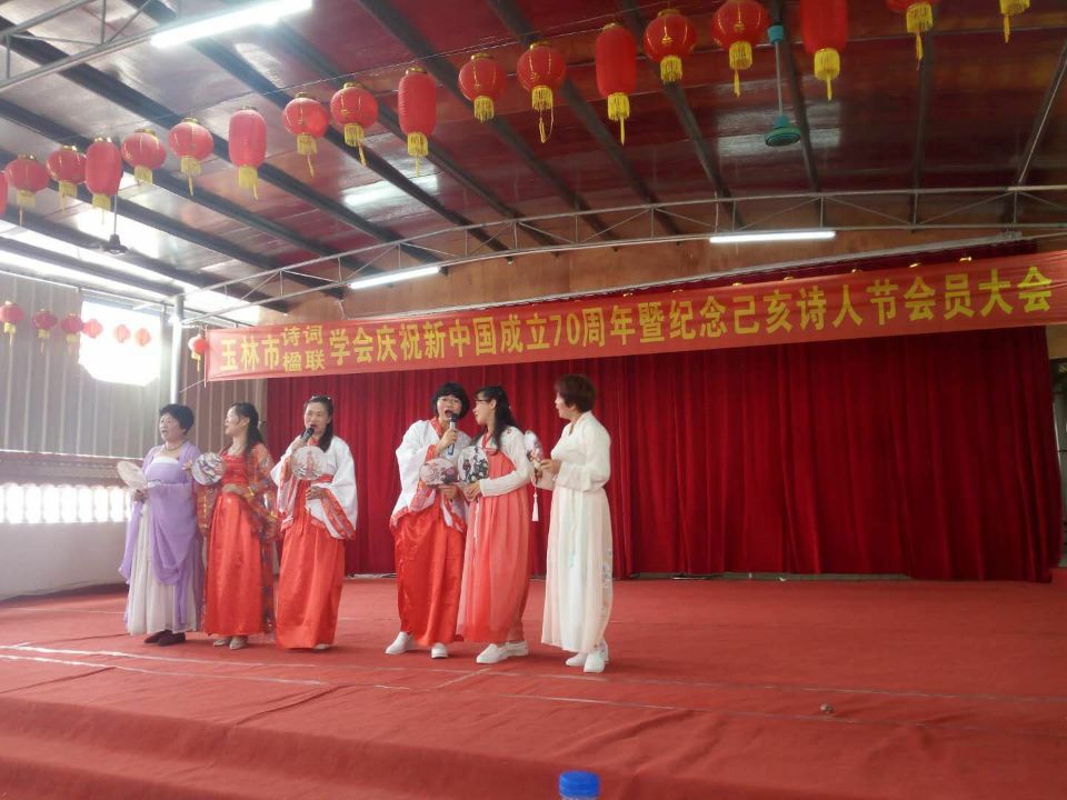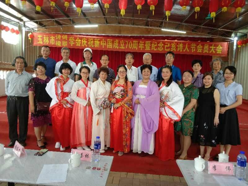 广西玉林市诗词学会、楹联学会庆祝新中国成立七十周年暨己亥诗人节会员大会,于5月25日星期六,在获得中国楹联教育基地光荣称号的玉林园艺场大礼堂举行。近二百位诗人、联家从玉林市八属各地赶来参加会议。玉林市委宣传部、玉林市文联的主要领导出席了会议并在主席台就座。
