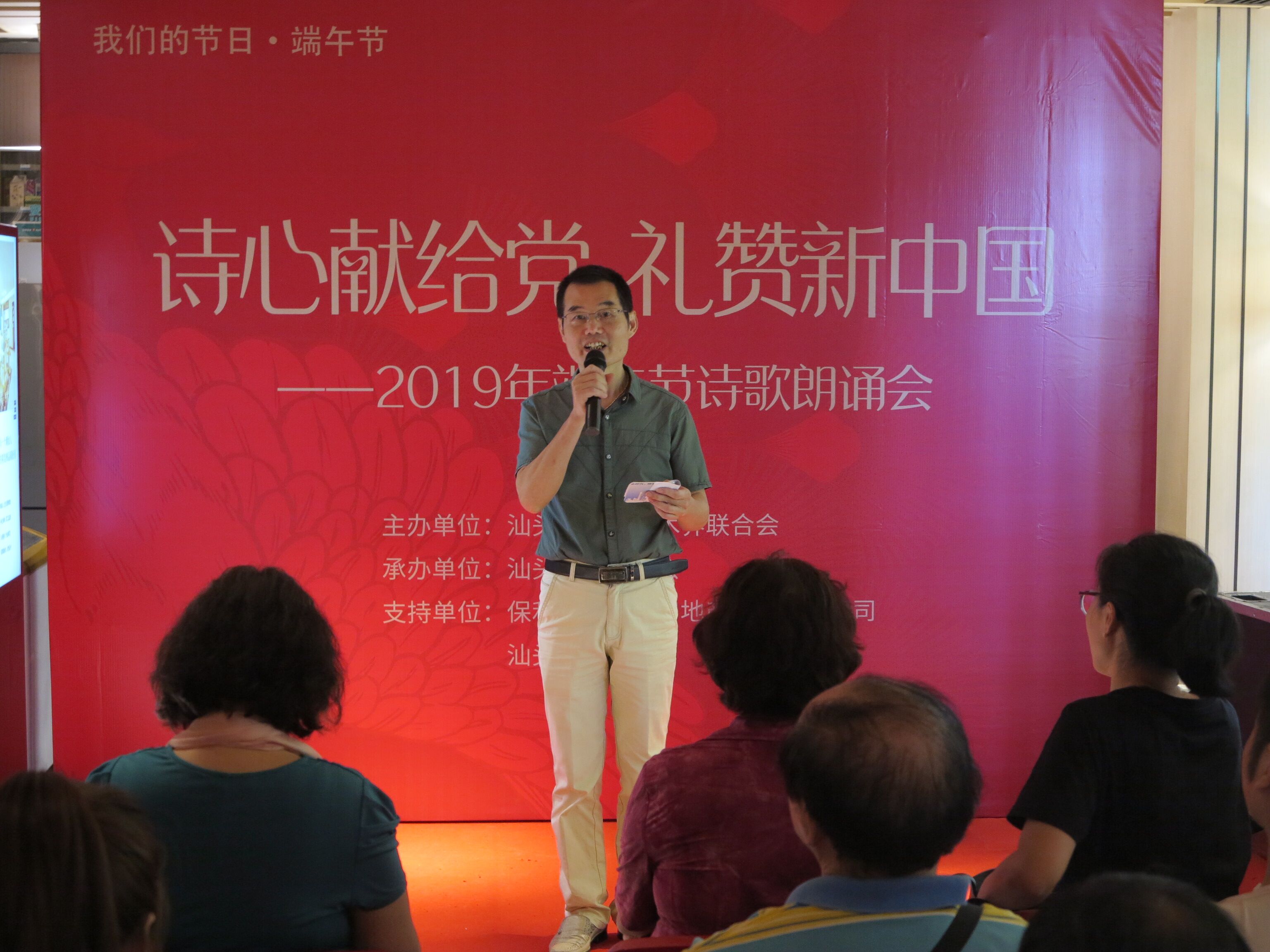 6月9日下午,由市文联主办、市作家协会承办的我们的节日“诗心献给党 礼赞新中国”2019年端午节诗歌朗诵会在汕头保利和府营销中心举办。