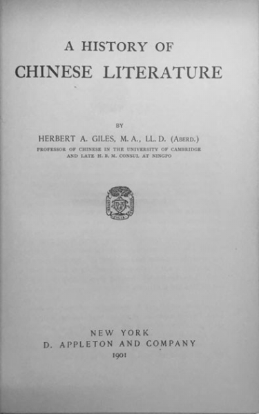 翟理思《中国文学史》书影
