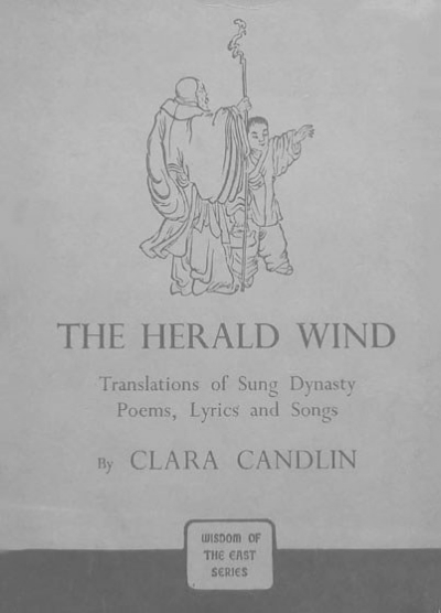 宋词在英国的译介,要等到1930年代,克拉拉·M·甘淋(ClaraM.Candlin)女士译出《风信集:宋代诗词歌赋选译》(TheHeraldWind:TranslationofSungDynas⁃tyPoems,LyricsandSongs)。《风信集》是英语世界第一部具有断代性质的词作英译本,于1933年由伦敦莫约翰(JohnMurray)出版社出版。该选集收录并翻译中国诗词共79首,其中宋代词作是主体,有60余首;涉及的词人有温庭筠、韦庄、李煜、晏殊、欧阳修、张先、晏几道、柳永、苏轼、秦观、黄庭坚、周邦彦、李清照、朱敦儒、辛弃疾、陆游、姜夔、刘克庄、蒋捷等,共计26人,基本涵盖宋代有影响力的重要词人,可称之为首部英译宋代词集。根据江岚的《唐诗西传史论》(2009)一书,与最早于1815年由英国汉学家马礼逊翻译的唐诗英译诗篇相比,宋词英译晚了约一个世纪,但与首部断代唐诗英译本《英译唐诗选》(GemsofChineseVerse,英国外交官W.J.B.弗莱彻翻译,1919)相比,两者在时间上相距不远。从跨文化译介和跨语际实践角度而言,《风信集》是英语世界中第一部大规模译介中国古典词作(主要是宋词)的词集,其开创意义、译介策略与文化价值值得肯定。在词作选择、翻译方法和修辞风格等方面,《风信集》开一代风气之先,别有特色。其一,在词作选译上,基于自己的翻译理念,甘淋选译的词作形式主要是长短句结合,较少选择形式整饬的五言或七言句词作。其二,在翻译方法上,为了增强译文的可读性,甘淋比较偏爱短句译文,擅长将长句拆为短句,比较近似于劳伦斯·韦努蒂(LawrenceVenuti)在《译者的隐身》中所提出的“归化法”。这比较充分地调动并发挥了译者的主动性和积极性,但却使得原作的艺术风格难以穿越文化阻隔,得到最大程度的译介和展示,也使得译文难以区分不同词人的艺术风格,甚至呈现出千人一面的倾向。其三,在修辞风格上,译者喜欢简朴通晓通透的词句,选译文本基本属于文意晓然的词作,有意避开用语优雅精致的典雅之作。就接受美学和阐释学来说,个性化的译文风格与个人化的选择倾向,以及宋词独有的音韵之美和意象之境,决定了《风信集》难以向普通英语读者呈现中国古典词作的美感体验与艺术价值。