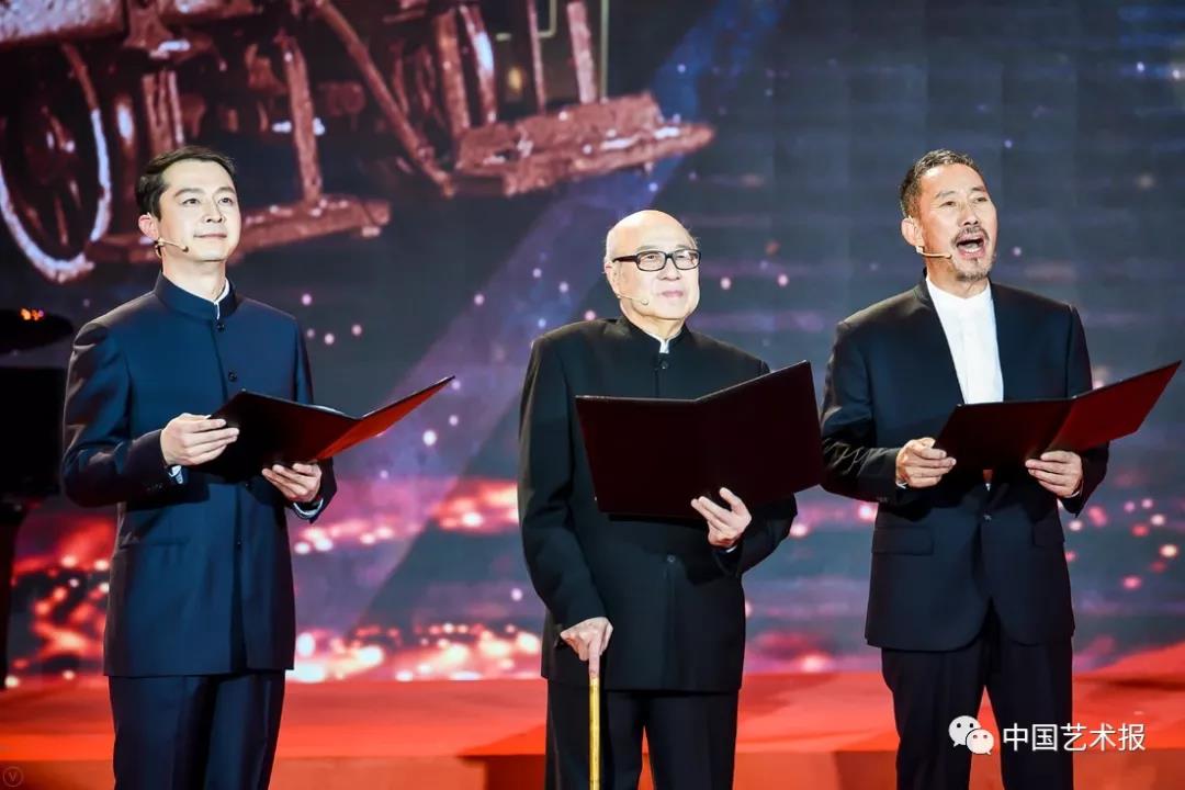 这场音乐诗歌咏唱会可谓是星光熠熠,老中青几代著名艺术家都倾心参与,从最初的策划到最终的舞台呈现,甲丁坦言这是他跟演员交流最多的一次演艺活动,正是因为“要做到深入人心”,更要“真正感人动情的角色化”,角色的塑造和整个形象的靠近,首先就要选对人,“比如《我和我们的好书记——廖俊波》中田华是母亲,王馥荔是妻子,孙茜作为女儿的角色,他们在朗诵的时候得让观众认可这个角色;《最红最美的旗》讲的是30年守岛的夫妇王继才、王仕花,甲丁认为必须要找有沧桑感和年龄感的夫妻档,最终选定了佟凡和赵越夫妇来演,他们的形象也非常符合;《筑梦者》所讲述的是袁隆平的故事,首先选中的就是王奎荣,因为整体形象和气质都很贴合角色。所以导演组在考虑演员时,不是朗诵好他就合适,而是这个演员的朗诵必须得符合他的角色,形象也得让大家都认同才可以。”