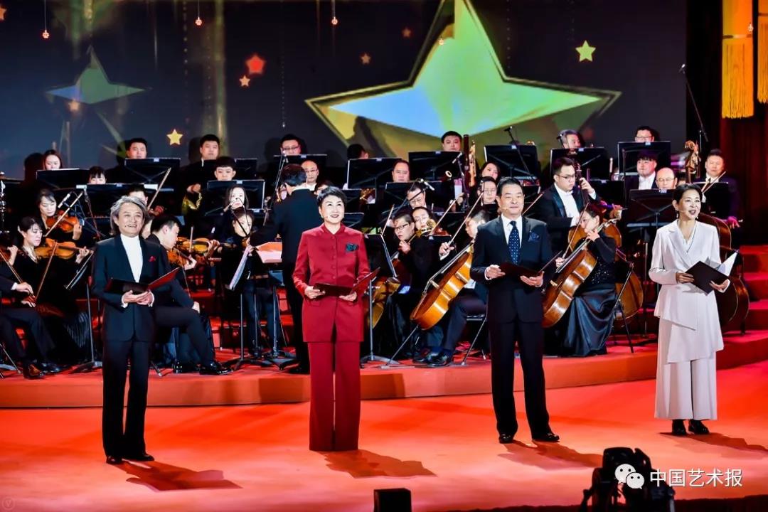 伴随着中国电影乐团演奏的《祖国不会忘记》《红旗颂》气势恢宏的乐曲声,由陈铎、刘劲、刚强领诵的《致敬,共和国最美的身影》拉开了咏唱会致敬和礼赞的序曲。