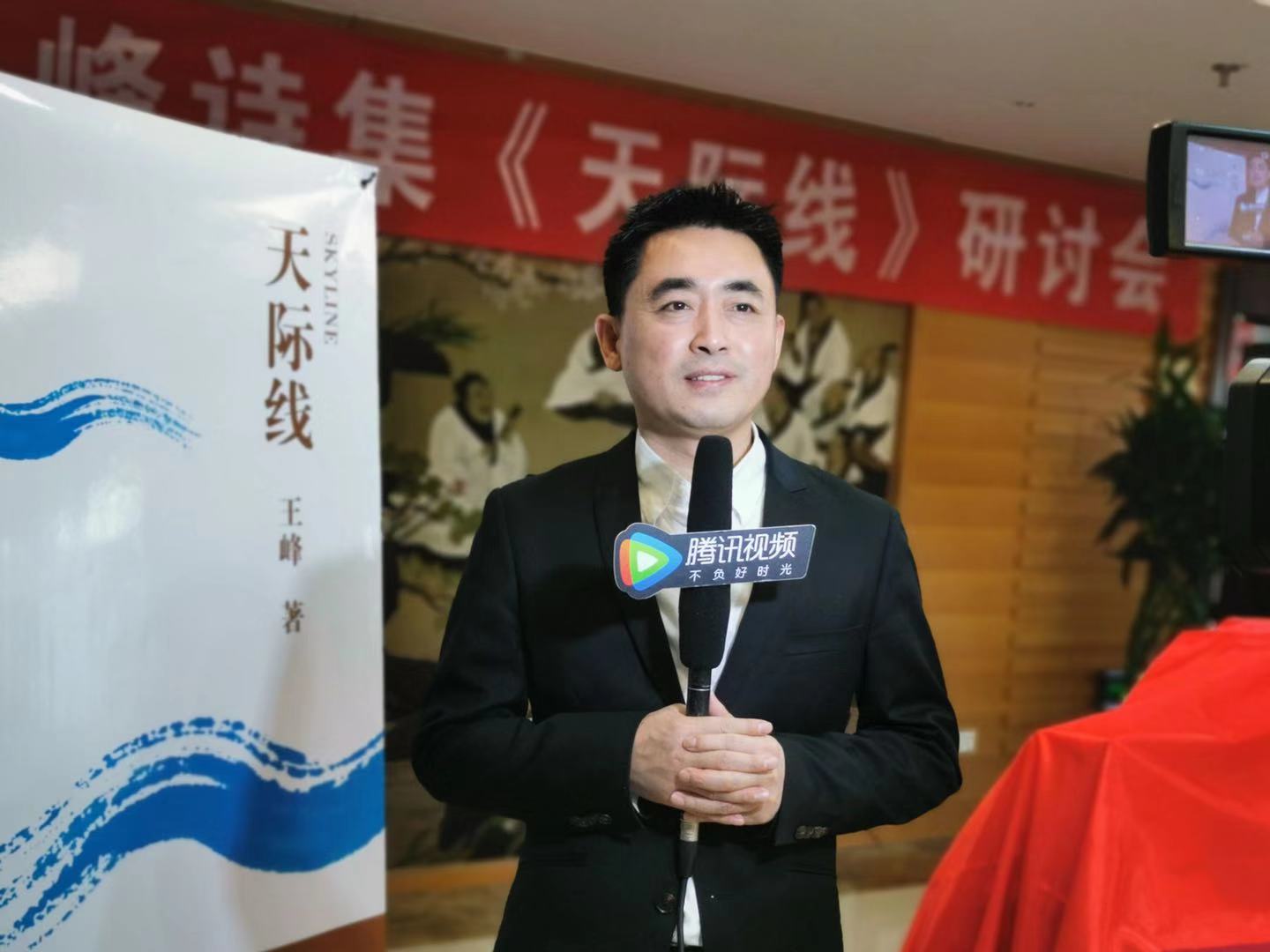 诗人王峰是一位翱翔于几万英尺高空的资深机长,曾是战斗机飞行员,现任山东航空股份有限公司北京分公司总经理,他的新诗集《天际线》由作家出版社出版,并在本次研讨会上举行了诗集的揭幕仪式。《天际线》以天空意象为主,是近年来王峰对蓝天和大地的拷问,对人生思考的新感悟,中国作家协会副主席何建明、中国文联副主席潘鲁生发来贺词,祝贺王峰新诗集的出版。