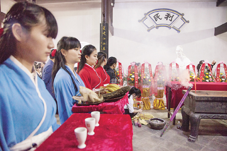柳子庙陈列室里记录着韩愈的一段话:“衡湘以南为进士者,皆以子厚为师,其经承子厚口讲指画为文词者,悉有法度可观” 。全国各地许多学子或登门求教、或写信寄问,受过他指导的后学有名有姓的有20多人。据统计,从初唐至清光绪九年( 1883年) ,湖南共考取进士2305人,其中永州487人,占21 . 1 %,柳宗元对永州的重教传统具有开启之功,饮水思源,永州人爱戴他、纪念他,每年祭祀他就成了必然。