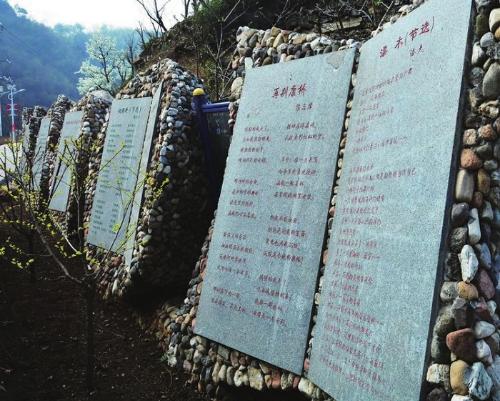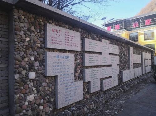 很快,上庄村制定了一个“五年发展规划”,从道路整修、河道拓宽,到居住环境改造,各项事务巨细靡遗。特别是,既然要建设“诗上庄”,诗歌必须是其中最重要的元素。在村口,树立了一杆高挺的毛笔,笔杆正中刻写的是由音乐家王立平书写的“诗上庄”三个大字。底部砚台正面是老诗人刘章创作并手书的《沁园春·上庄》,“灵性地,出贤良才俊,诗画琳琅”一句点出了上庄人对小山村的赞誉之情。从村口往里走,从赵大地、草木安到河西、花宝石,从北场、三仙洞到厂沟、西沟,沿着公路两侧,无论是山坡上,还是路边的小广场,都布满了刻写在墙上、石碑上的诗歌。在村头赵大地,设有诗经园,选《诗经》中的经典诗句刻在竹简、中华鼎、中国结之上。10户农家院以《诗经》中诗作的诗题命名,农家院的布置非常漂亮,尽量体现《诗经》的元素。在草木安诗歌广场,展示了郭沫若、闻一多、昌耀等现当代诗人的代表诗作。在“诗上庄诗歌园”,左侧石碑刻有诺贝尔文学奖获奖诗人作品,右侧则是历届鲁迅文学奖的获奖诗人作品。园中央则摆有古今中外10位重要诗人的雕像,远有屈原、李白、杜甫等古代诗人,近有艾青、臧克家等近现代名家,还有普希金、惠特曼等外国诗人。
