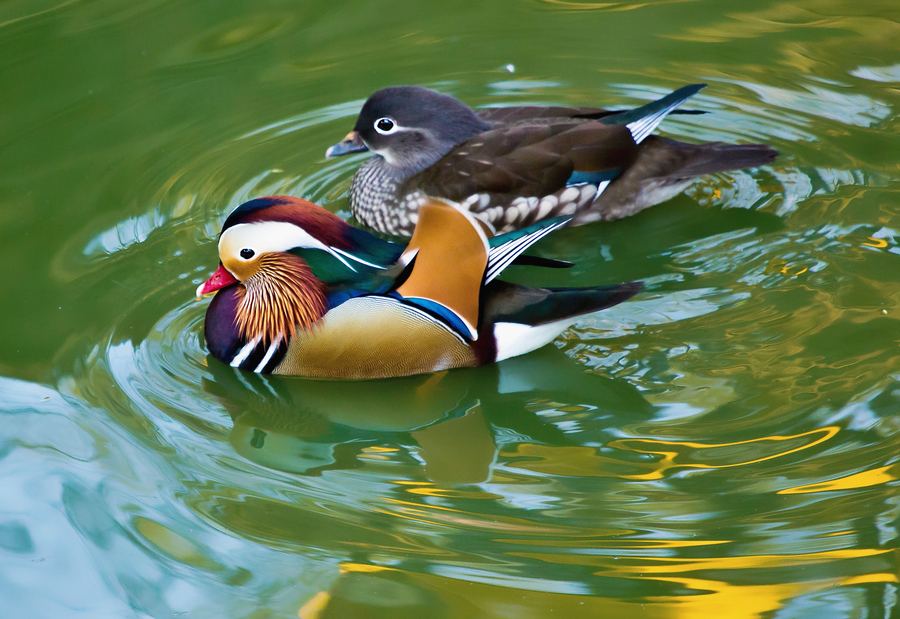 秋色美,伉侣荡湖湾。
