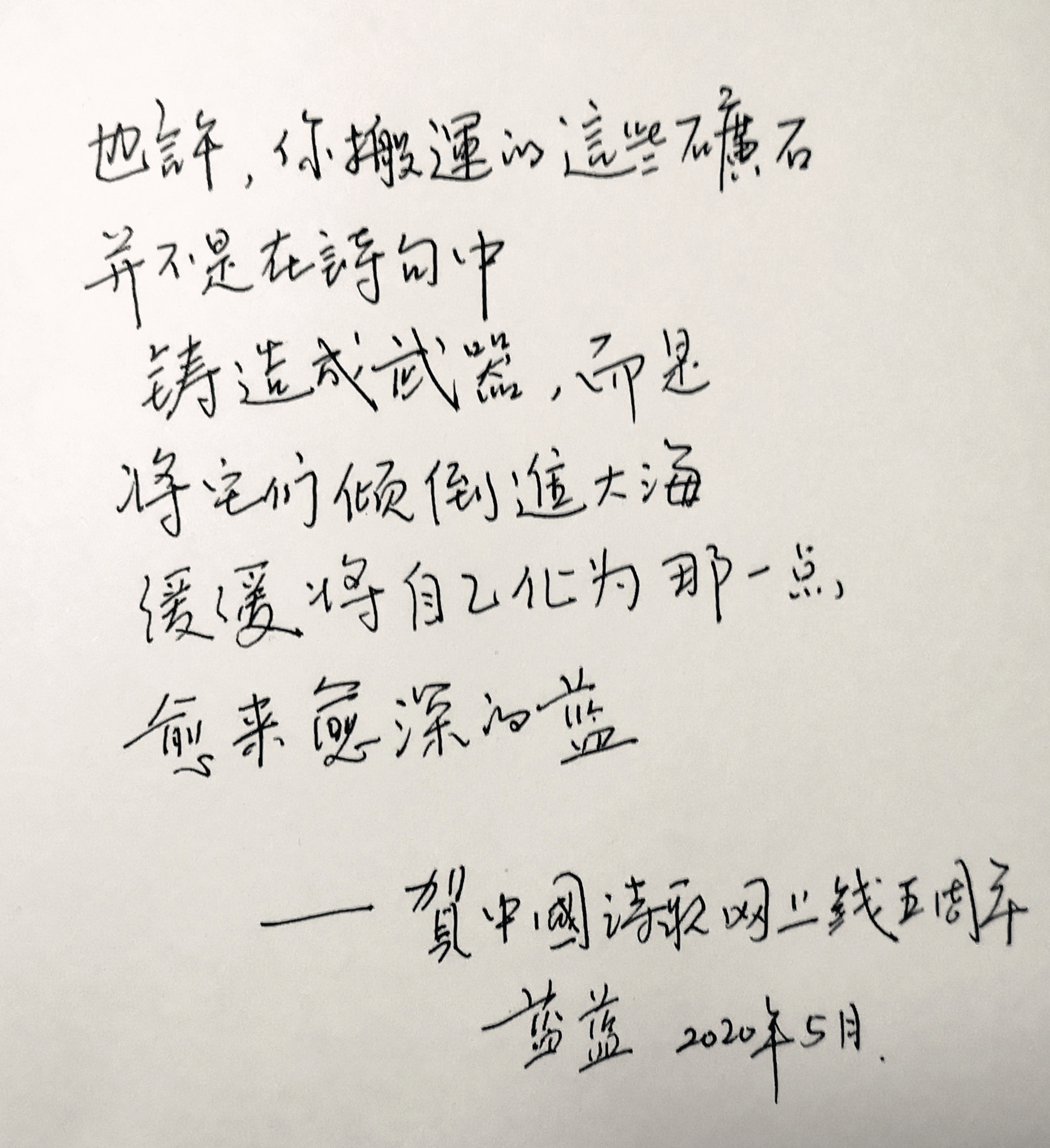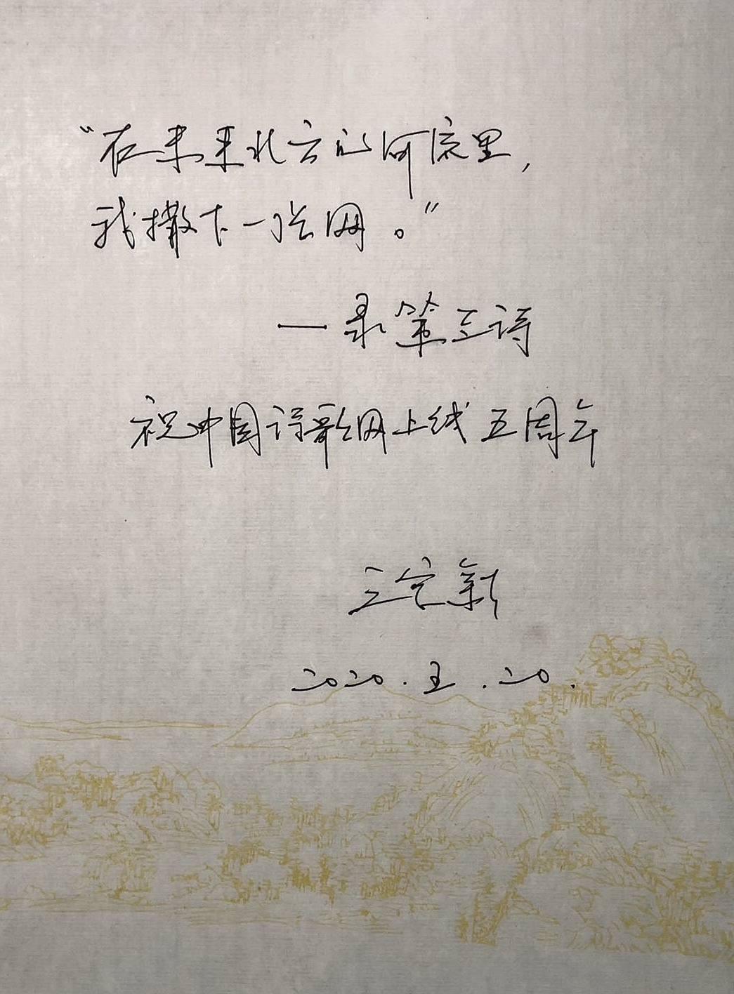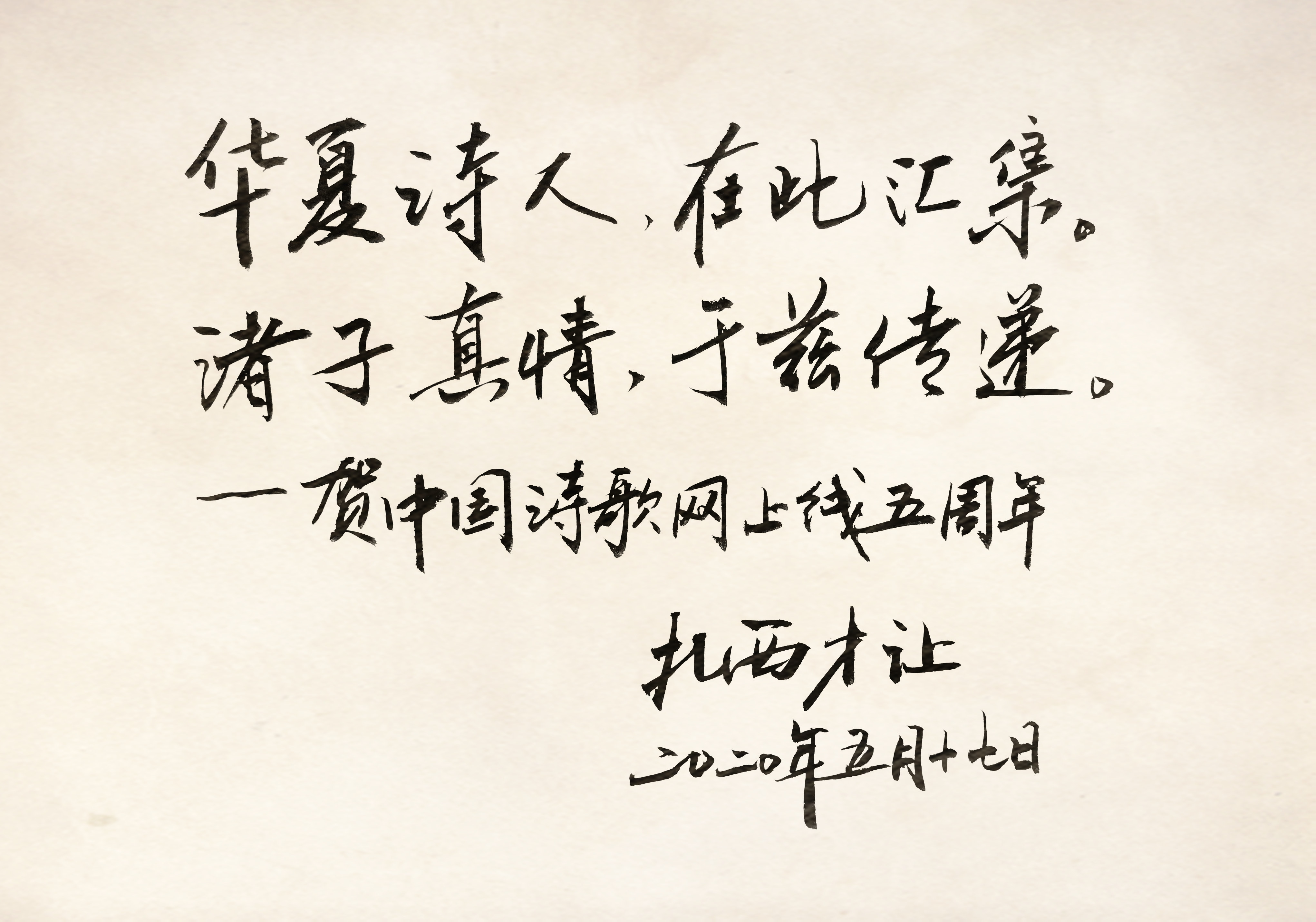 2020年6月18日,将是中国诗歌网正式上线五周年!五年来,在各位诗界大家和众多诗人、评论家和翻译家的深度参与和大力支持下,中国诗歌网迅速成长为诗歌文化的重要阵地,成为服务诗人、推荐优秀文本和发表诗歌的权威性专业平台。在上线五周年这个特别的日子里,近百位代表性的诗人、评论家、翻译家和出版人通过诗书画的方式为中国诗歌网送出了美好祝福与殷切希望。