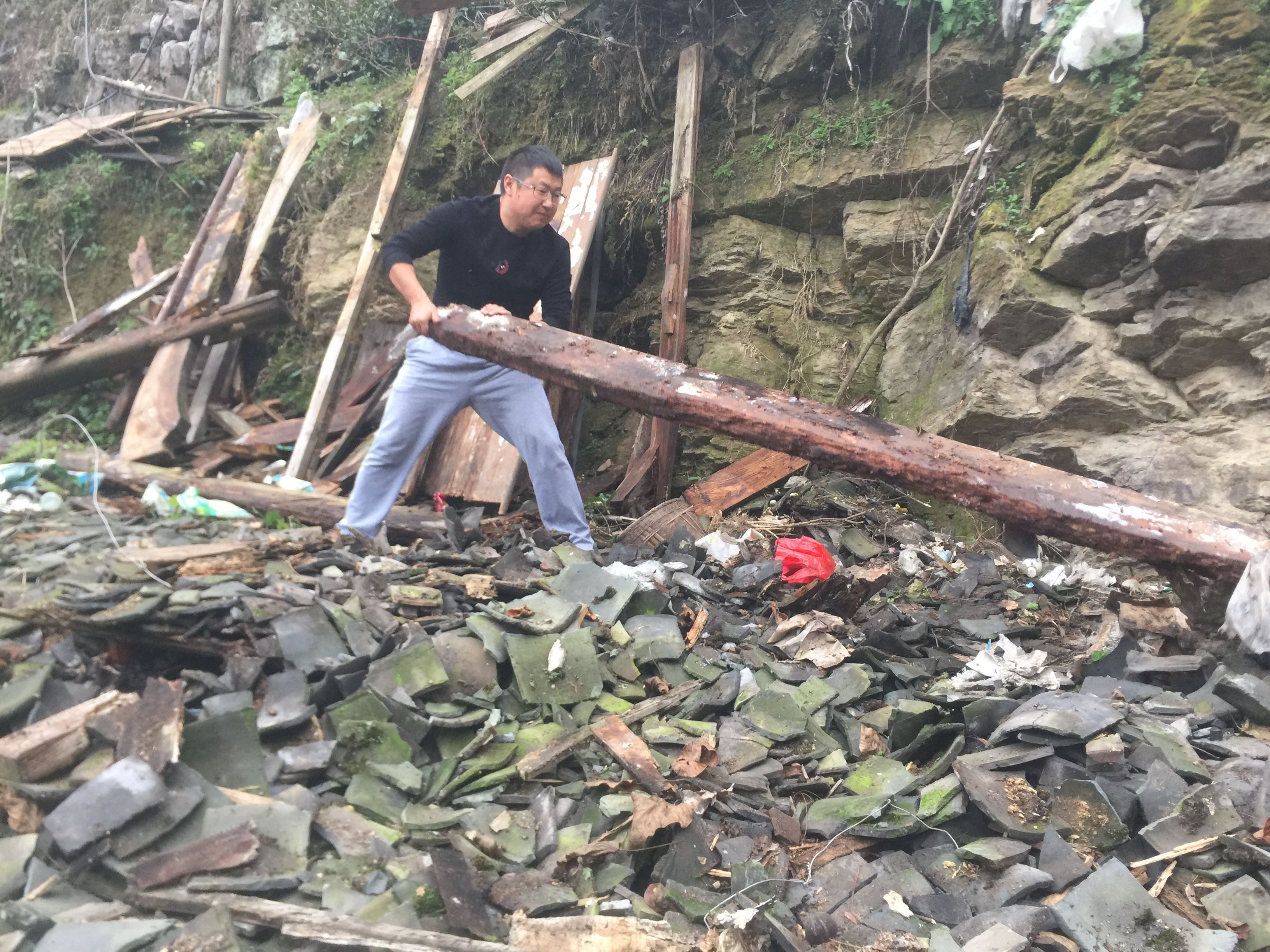扶贫诗人周明帮助贫困户拆除危房