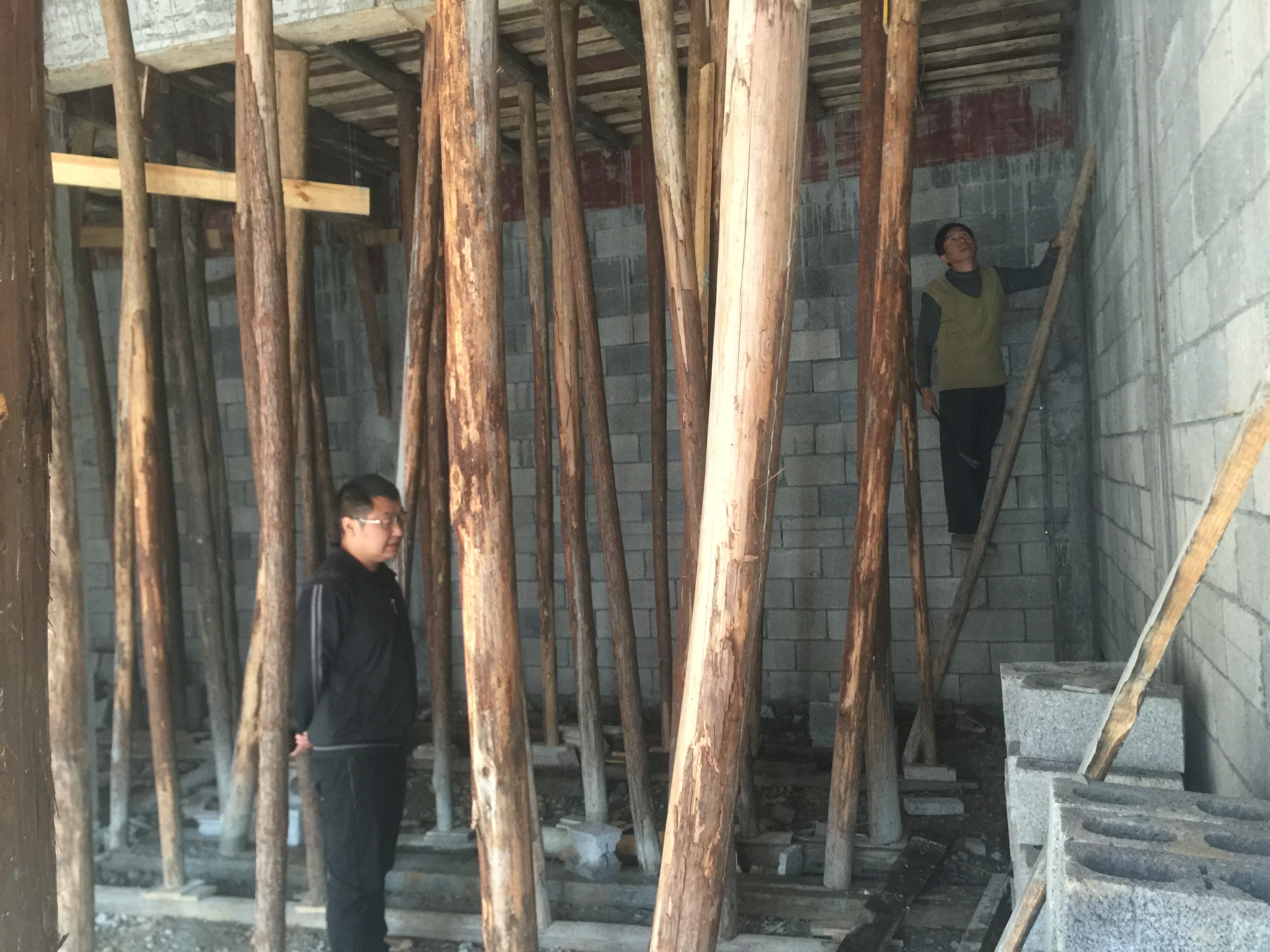 悬崖,他背着水泥和砂