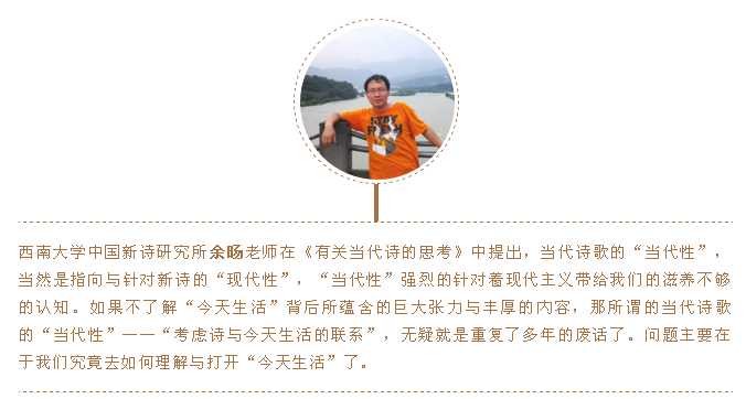海德格尔曾说: “诗人的天职是返乡”。诗人的天职是通过在语言中的冒险,达到在“完满的自然”中的安居。“诗人何为”是对技术制造和人为意图的反思,其探讨的根本问题就是诗人与自然的关系,这个问题在今天的当代性研究中也是非常重要和不可忽视的。疫情以来,这也是所有诗人、诗学理论专家应该深入思考的问题。我们不仅要努力应对错综复杂的当代社会现实,也要深刻思考人与自然的和谐共存关系,诗人的天命就是要思考人的诗意存在。