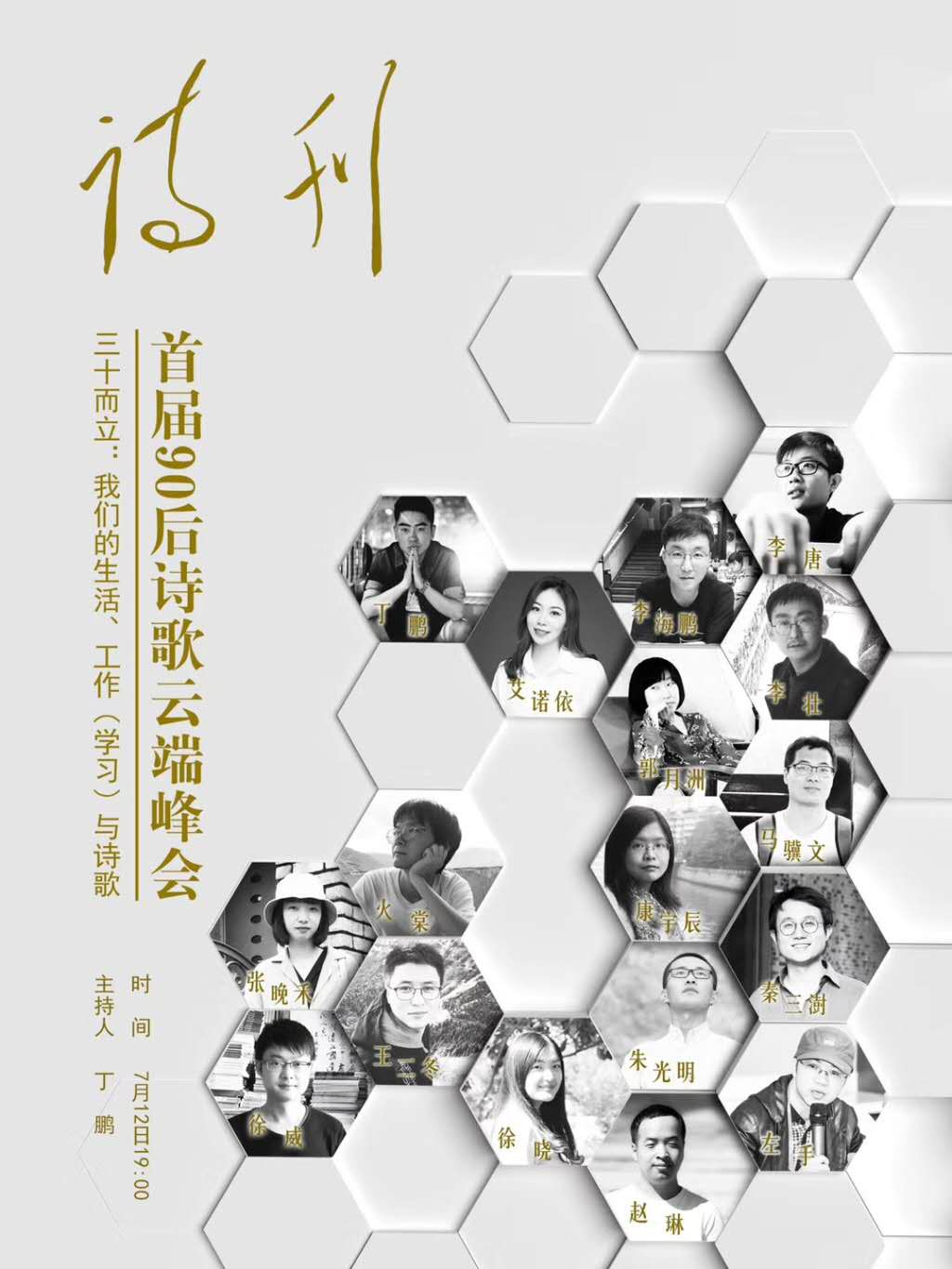 7月12日晚7点,由《诗刊》社主办的“首届90后诗歌云端峰会”在腾讯看点平台成功直播,王二冬、李唐、李壮、艾诺依、张晚禾、马骥文、李海鹏、康宇辰、徐威、秦三澍、左手、徐晓、朱光明、郭月洲、赵琳、火棠16位90后诗人围绕“三十而立:我们的生活、工作、学习与诗歌”展开讨论,畅谈各自的生活现状、诗人身份的确立、对同代人的反思。