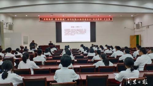 随后,《诗刊》编辑部副主任彭敏,为学生们带来了“诗词之美 点亮人生”讲座。