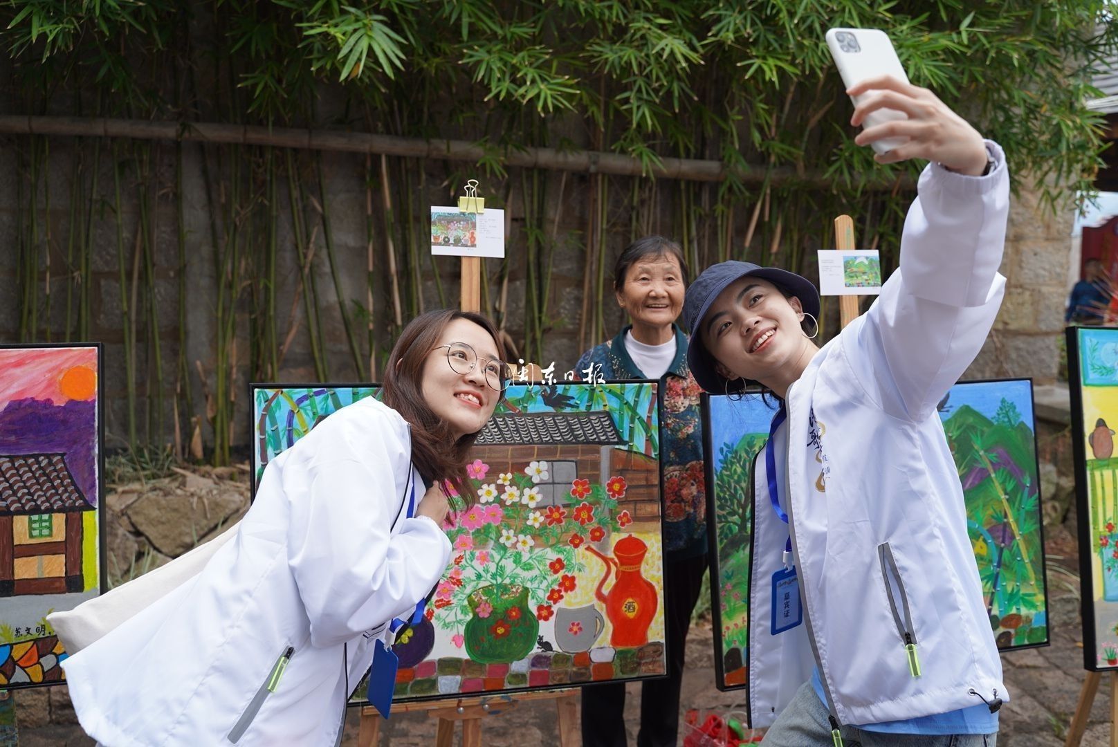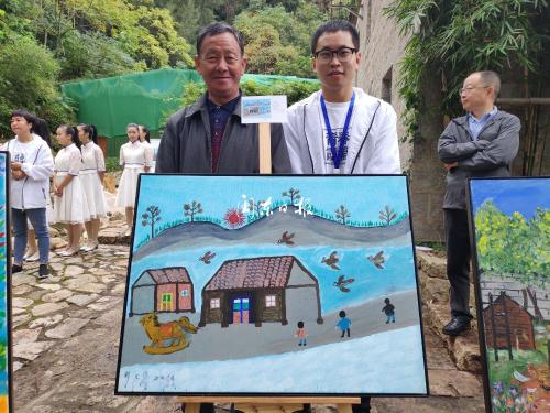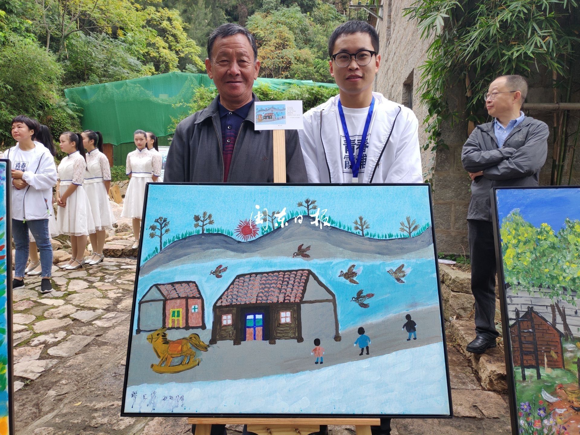 第36届青春诗人朴耳、蒋在与农民画家根据诗句创作的油画合影