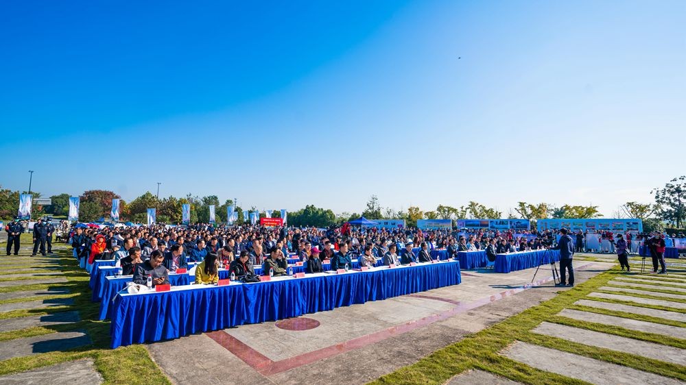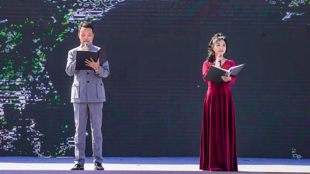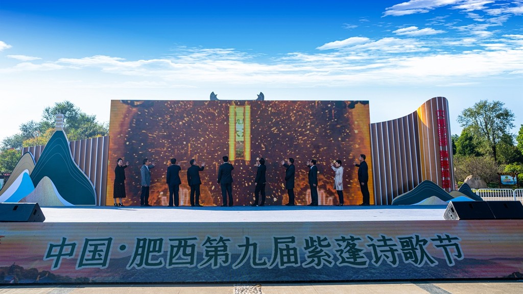 随后,由中共肥西县委书记金成俊,著名评论家、诗人、《诗刊》社副主编霍俊明,合肥市文联主席唐德鹏,著名诗人、中国诗歌网总编辑金石开,肥西县人大常委会主任张俊平,著名诗人、安徽省作协秘书长、《诗歌月刊》主编李云,肥西县政协主席朱士久,肥西县委副书记拱艳,合肥市文旅局副局长俞晓华,中共肥西县委常委、宣传部长王旻共同开启本届紫蓬诗歌节。