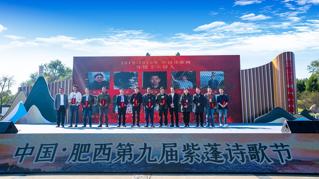 同时,本次诗歌节隆重揭晓了2019-2020年“中国诗歌网年度十佳诗人奖”。 胡弦、蓝蓝、潘维、韩文戈、江离、谢宜兴、育邦、王学芯、彭杰 、高昌等十位诗人获此殊荣。著名评论家、诗人、《诗刊》社副主编霍俊明、中国诗歌网总编辑金石开、著名诗人、安徽省作协秘书长、《诗歌月刊》主编李云为十位诗人颁发了荣誉证书。中国诗歌网年度十佳诗人象征着多元、新锐的创作方向,真实、及时、有力地反映了当下诗坛的创作生态。自2018年开始,中国诗歌专业网站、国家重点文化工程中国诗歌网开始了一年一度的“年度十佳诗人”评选,推动当代诗歌的繁荣,激励当代诗人创作出更多反映时代主旋律精品力作。