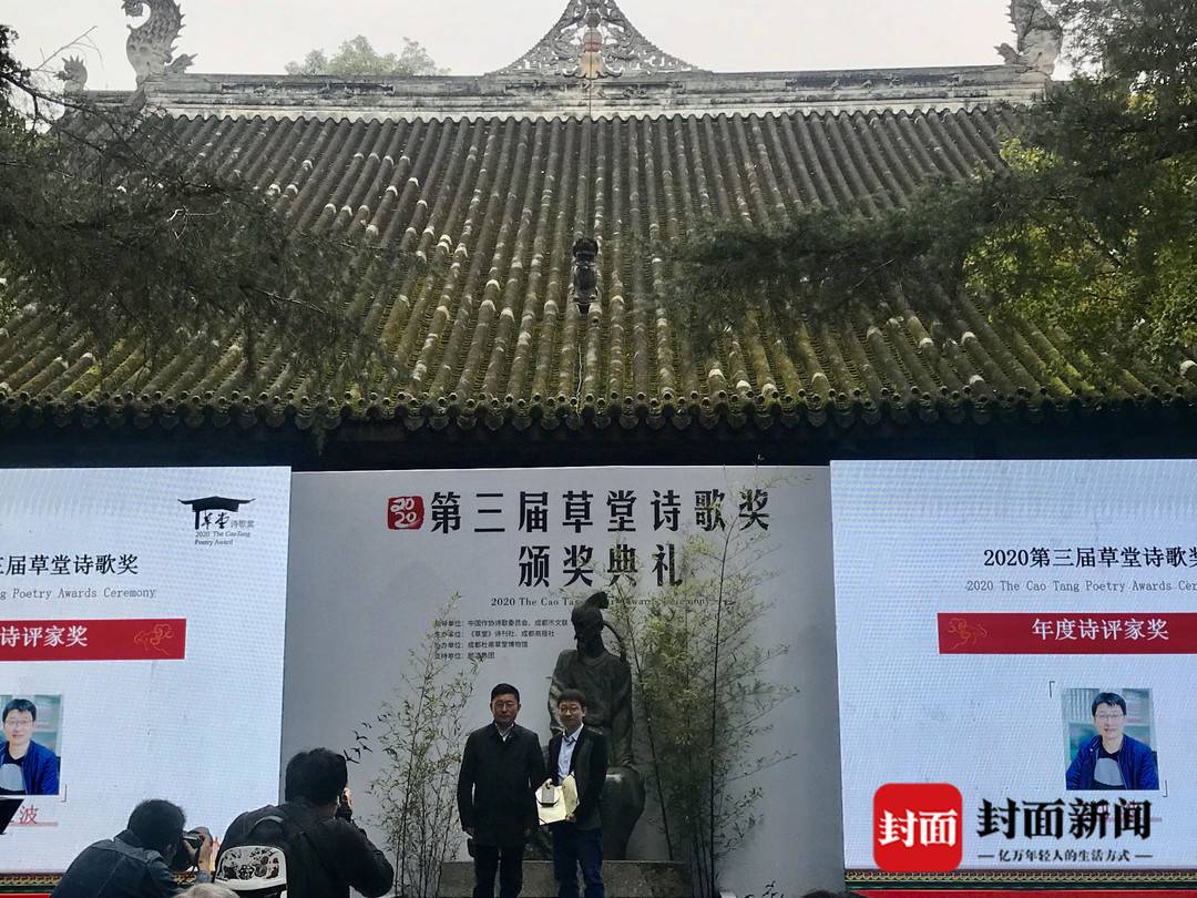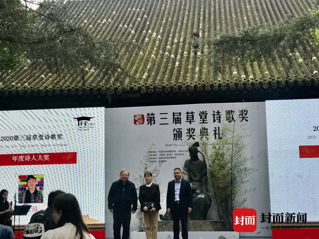 深秋的杜甫草堂,弥漫着诗歌的气息。10月25日上午,2020年“第三届草堂诗歌奖”颁奖典礼,在成都杜甫草堂举行。现场颁出“年度青年诗人奖”获得者金小杰、王子瓜、玉珍;“年度实力诗人奖”:李南、古马;“年度诗评家奖”由刘波获得。
