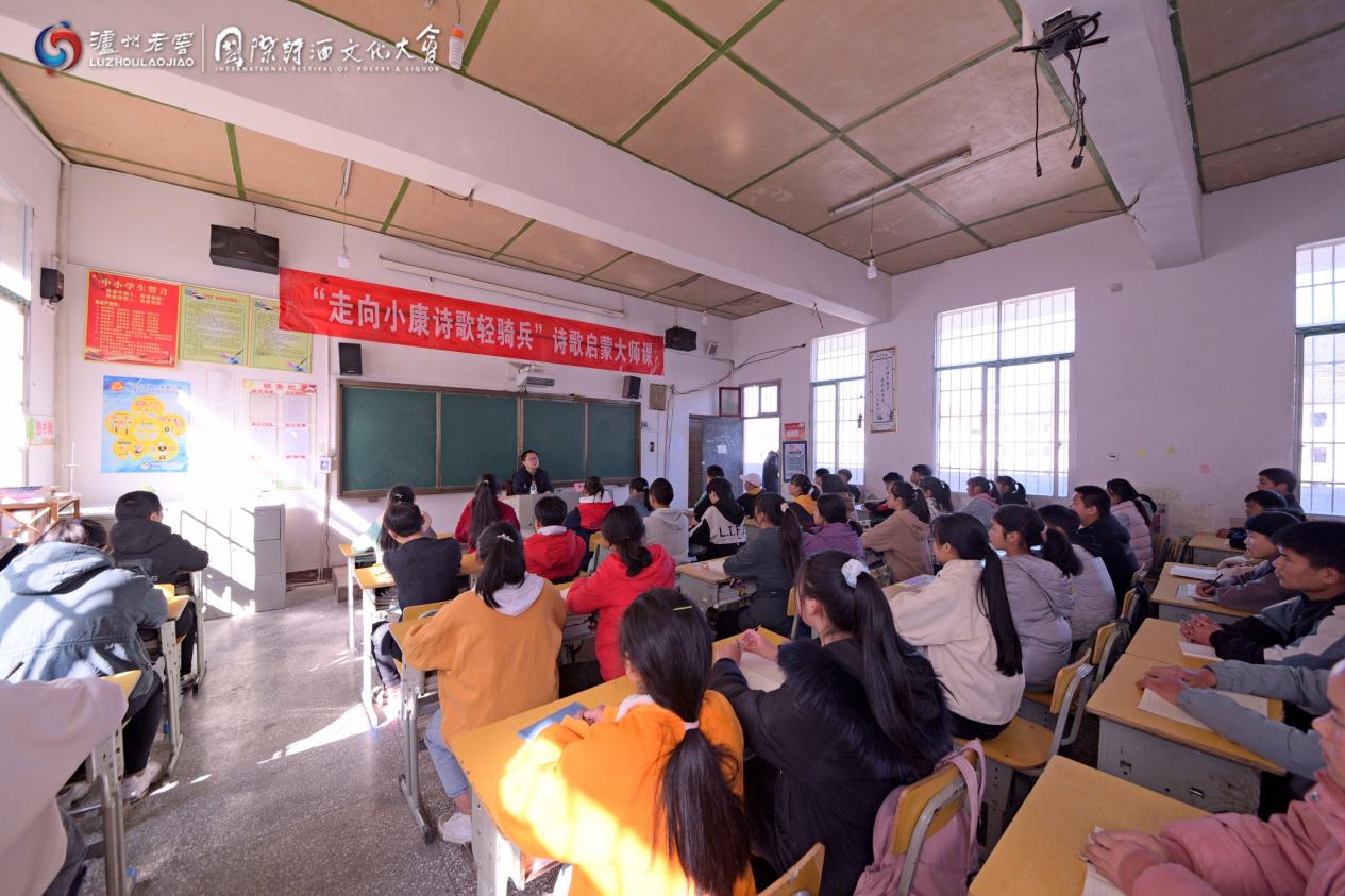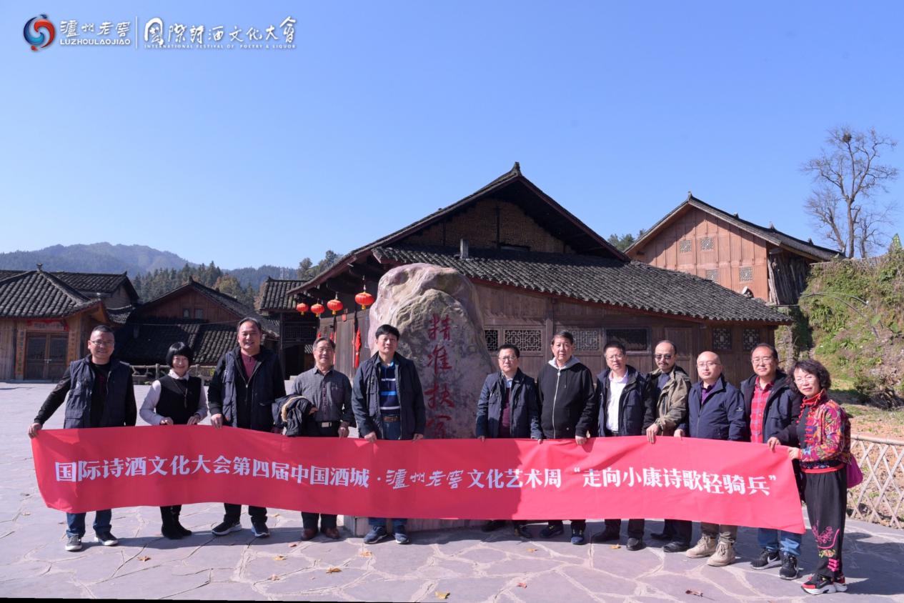 11月12日,由泸州市人民政府、中国作协《诗刊》社主办,中国诗歌网、泸州老窖股份有限公司等承办的国际诗酒文化大会第四届中国酒城·泸州老窖文化艺术周——“走向小康诗歌轻骑兵”走进湖南花垣县双龙镇,深入精准扶贫代表村落,参观十八洞村精准脱贫之路展示厅,学习“精准扶贫”精神,开展诗歌启蒙大师课,助力脱贫攻坚,为决胜全面小康、决战脱贫攻坚贡献诗歌与文学的力量。