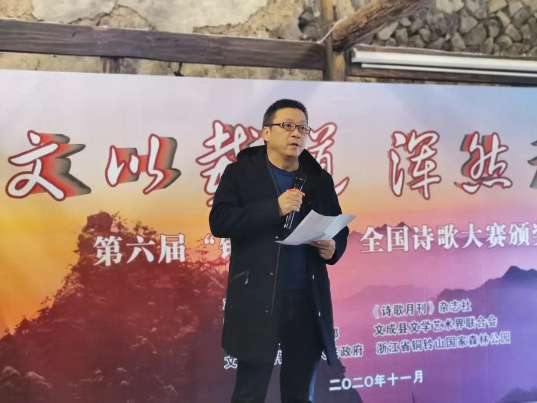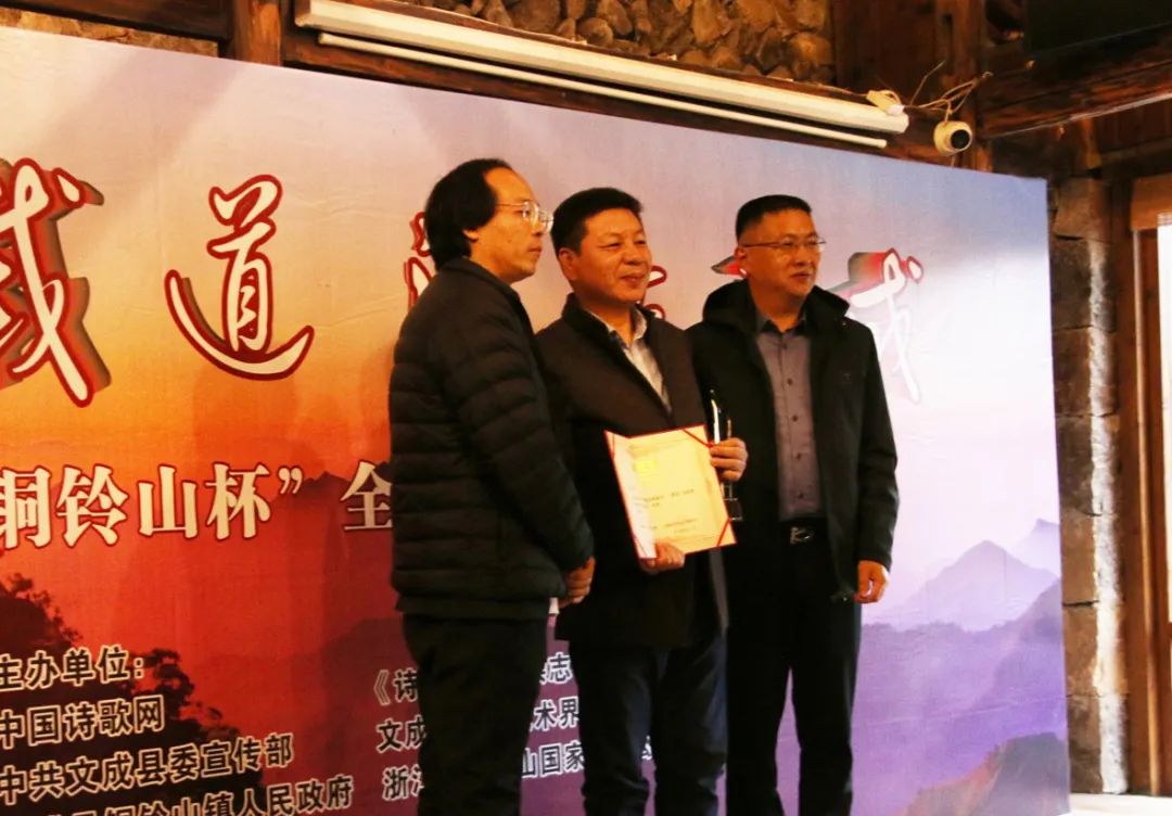 2020年11月27-29日,第六届“铜铃山杯”全国诗歌大赛颁奖仪式在浙江省文成县文艺家创作基地举行。本届“铜铃山杯”全国诗诗歌大赛由中国诗歌网、《诗歌月刊》杂志社、中共文成县委宣传部、文成县文学艺术界联合会、文成县铜铃山镇人民政府、浙江省文成县铜铃山国家森林公园联合举办。