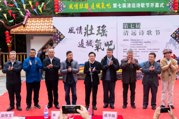 清远诗歌节自2014年启动,至今已举办了七届。诗歌节坚持走基层、扎根人民,分别在清远市的县(市、区)举行。今年第七届清远诗歌节走进民族地区——连山壮族瑶族自治县。连山县位于粤湘桂三省(区)交界,有边城之称,是广东省3个少数民族自治县之一;又是驰名海内的“中国森林氧吧”“全国百民族百佳深呼吸小城”。本届诗歌节与当地瑶族盘王节结合起来,在瑶山茶联村举行了一个别开生面的开幕式,诗人们赏壮歌观瑶舞叹民族风采,品氧吧醉美景享无限风光。
