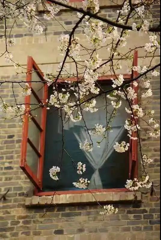 走出民国建筑的女孩,站在樱花树下