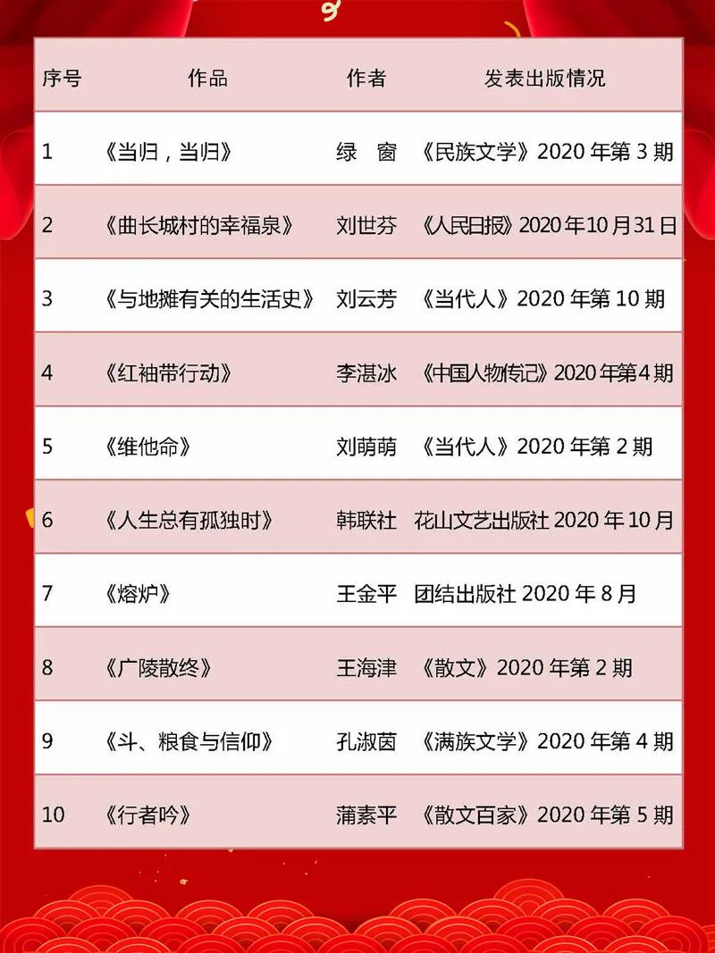 2020年度河北文学排行榜上榜评语