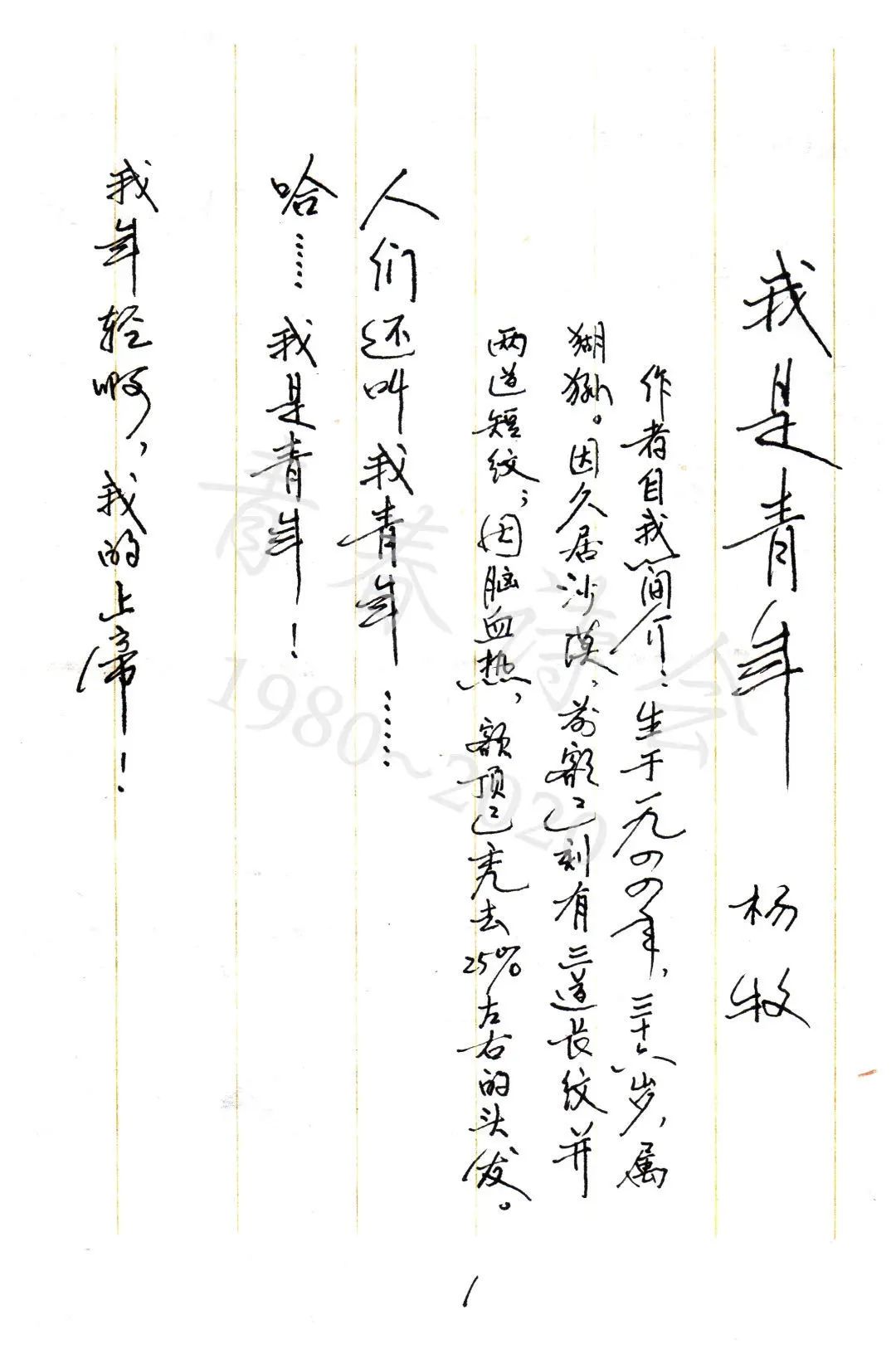 杨牧手稿《我是青年》