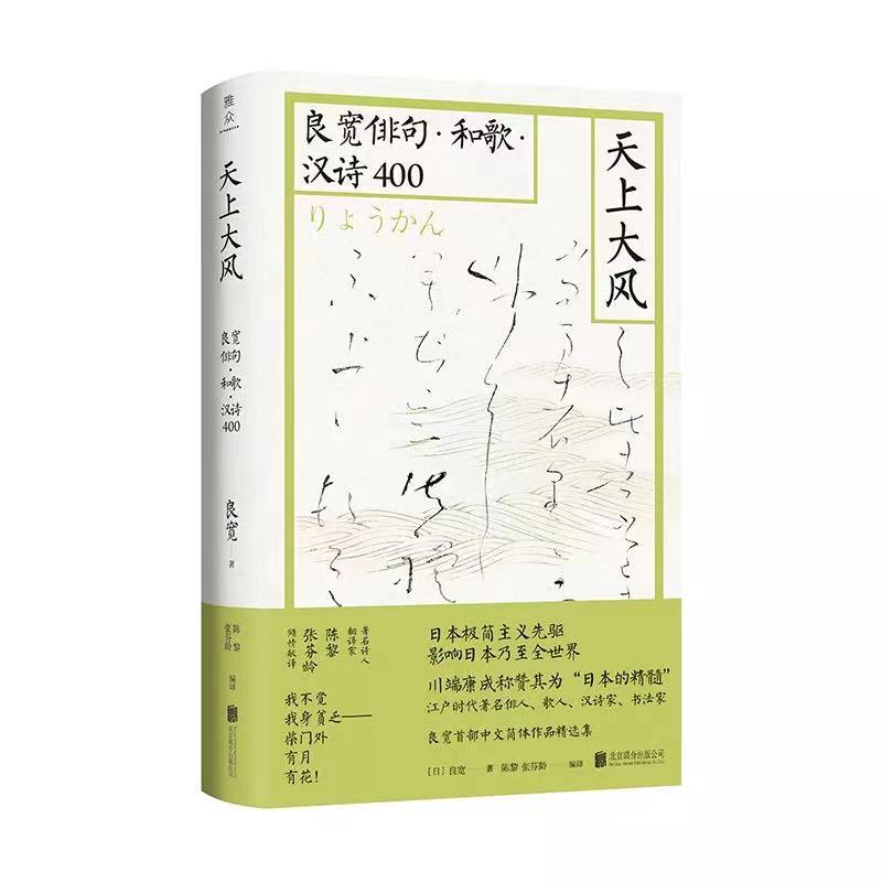 这本《天上大风:良宽俳句·和歌·汉诗400》收录日本江户时代后期俳句、和歌、汉诗、书道四绝的诗僧良宽俳句100 首,和歌180 首,汉诗130 首,共410 首诗作。1968 年诺贝尔文学奖得主日本小说家川端康成(1899—1972), 在其题为“日本的美与我”(美しい日本の私)的获奖演讲辞中,引用了良宽的辞世诗(本书B131 首)“我有什么遗物/留给你们?——/春花,山中/杜鹃鸟鸣,/秋日红叶……”,以及另外三首短歌——“长长的春日,/跟孩子们/玩手毬——/啊,一天/又过去了”(B74首)、“风清,月明,/我们一起/尽情跳舞吧,/让老年的余波、/余韵永荡……”(B136 首)、“我并非不与世人/交往:是因为/我更喜/爱独/游”(B141 首),来说明良宽的诗歌如何体现日本的精髓以及自古以来日本人的情感、心性。