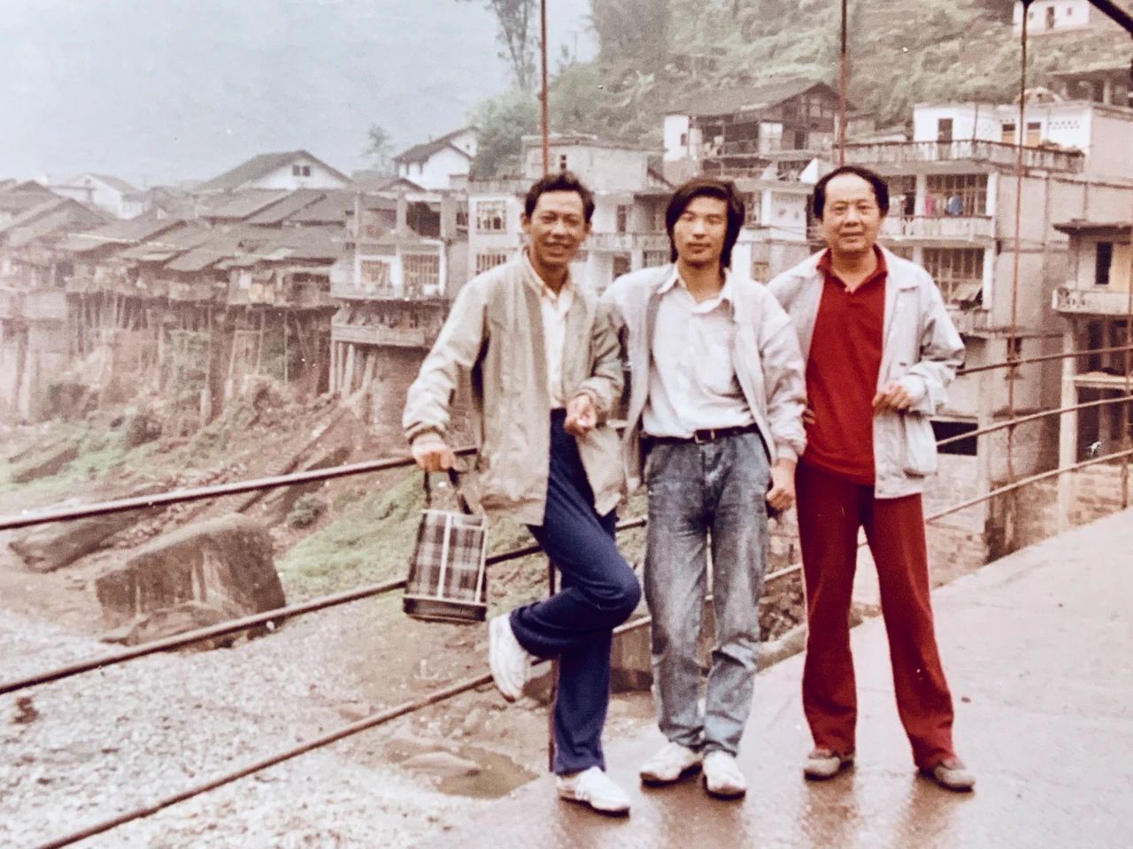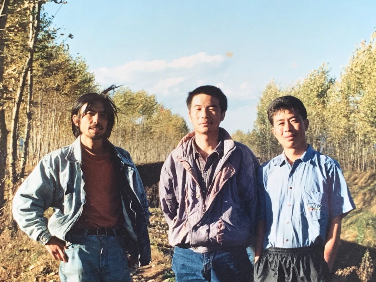 1990年雷平阳从盐津调回昭通老家工作,与好友画家顾泽旭、教育家董晓明在欧家营旁边的河堤上。