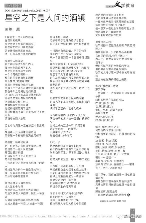 (选自《诗林》2020年第3期)