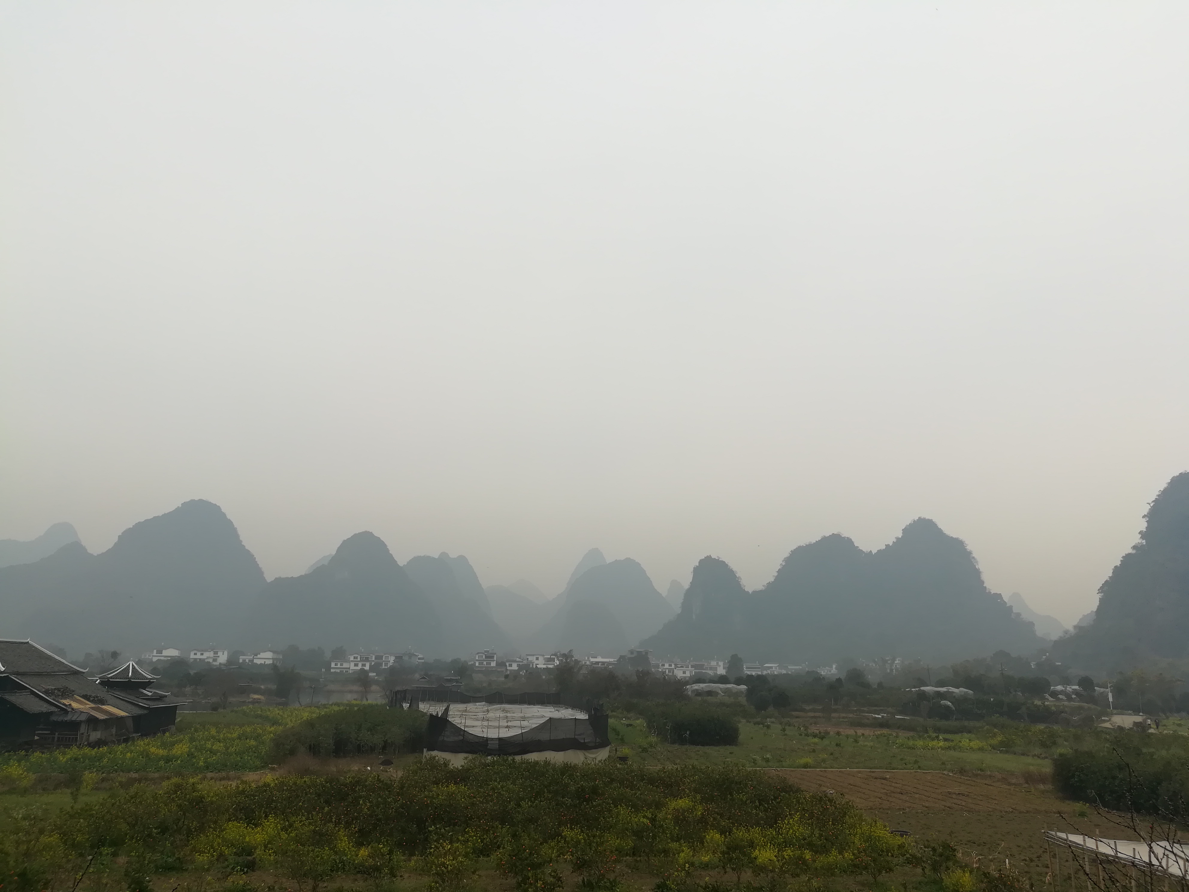 烟村点点林中露,田垄层层雾里加。