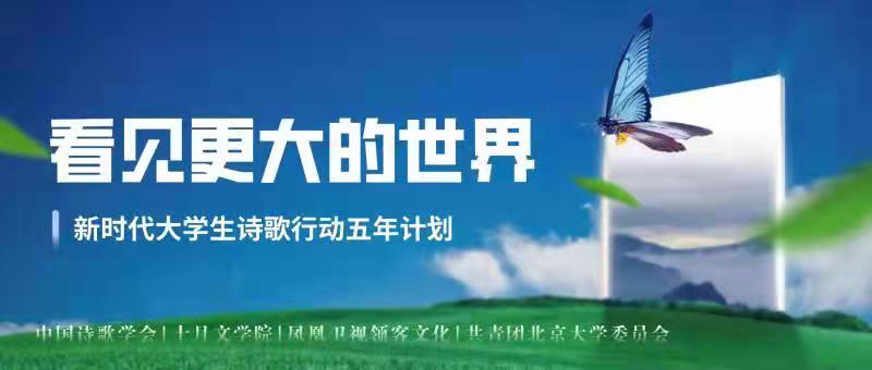 为了让时代记录新时代大学生的心声,让新时代的大学生记录这个伟大的时代,中国诗歌学会、十月文学院、凤凰卫视领客文化、共青团北京大学委员会现共同发起并主办“看见更大的世界——新时代大学生诗歌行动五年计划”。五年行动计划的第一年以“看见更大的世界”为主题面向全国在校大学生征集诗作并由此在全国范围内开展系列活动。