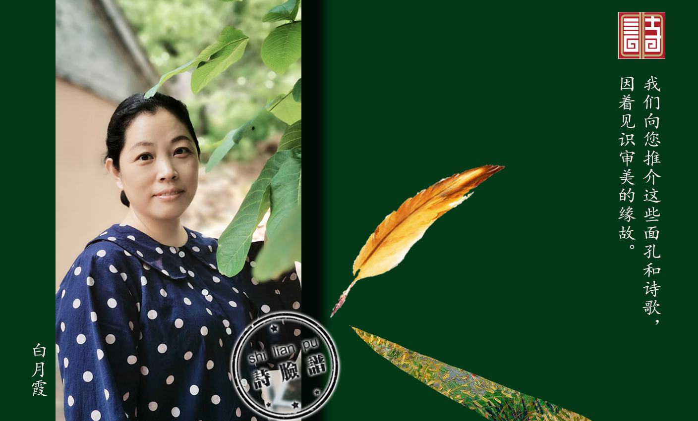 白月霞,1983年生于河北邯郸。现居河北衡水。有诗歌发表于《诗刊》《诗选刊》《星星》《诗歌月刊》《绿风》等。
