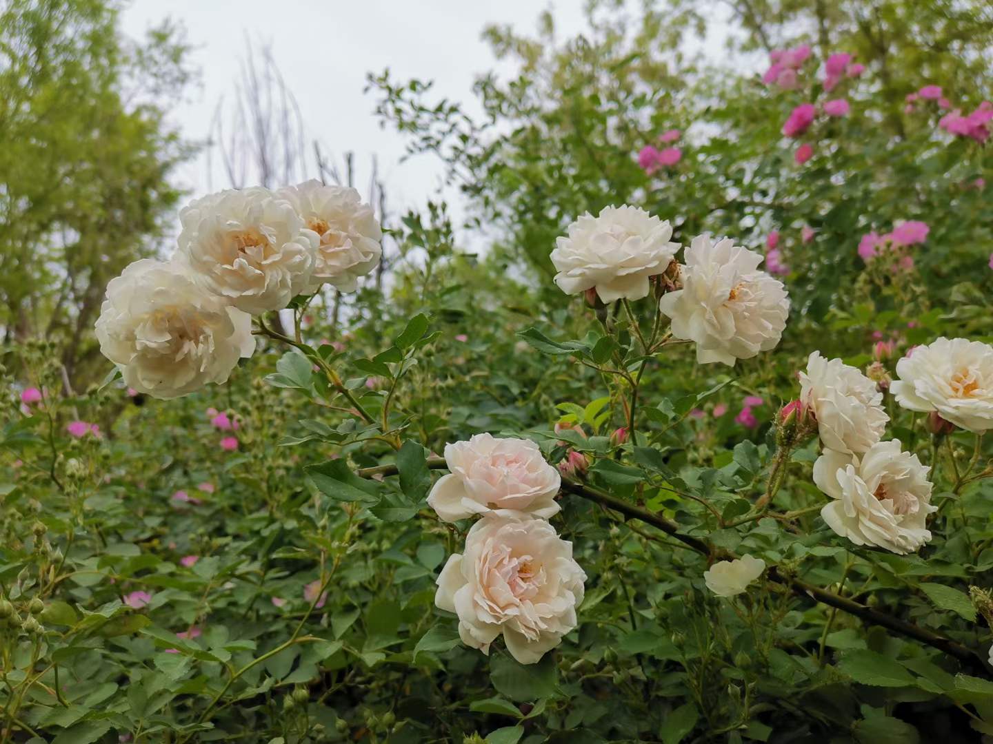 蔷薇年少绯容媚,月季姿丰艳色娆。