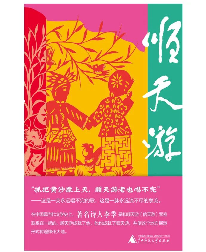 “顺天游”是陕北、晋绥、内蒙古一带主要的民歌形式之一种,是一种形式最简单的诗。由于它的形式自由生动,适于表达、传述人民的生活及情感,因此,生活在这里的农民不仅是它的歌唱者和传播者,同时也是它的创作者,他们把自己的心绪和生活遭遇创作成新的“顺天游”。著名诗人李季有幸在“顺天游”的故乡之一——陕北三边工作和生活。工作之余,他从农民歌手、放羊老汉、农村妇女、区乡干部那里,收集了几千首“处于萌芽状态的文艺”——“顺天游”,并加以选编整理。这种民歌艺术,作为文艺工作者的素材和研究资料,对于弘扬民间文化具有重要意义。