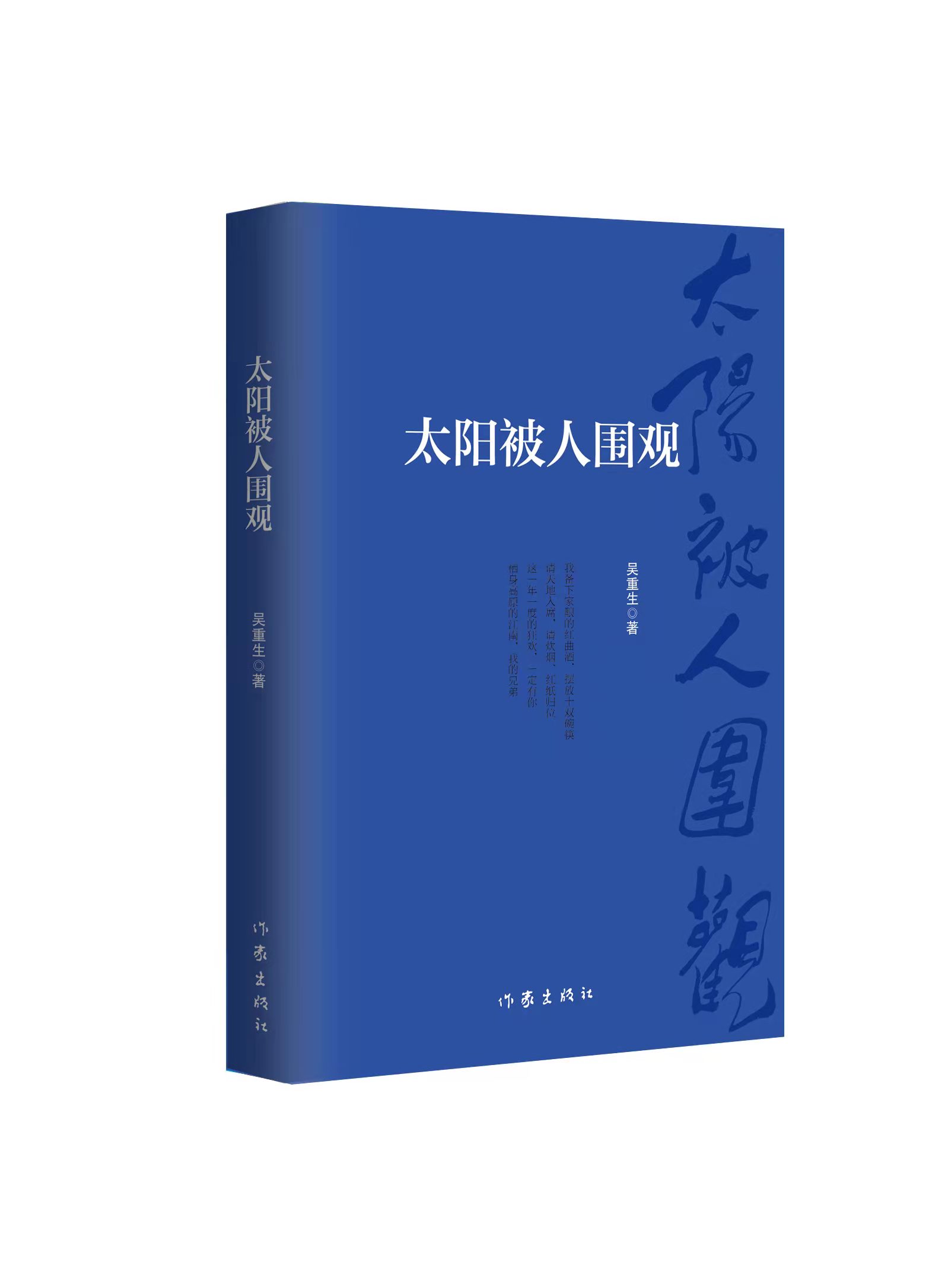 作家出版社日前重磅推出吴重生新诗集《太阳被人围观》。这是作者继2015年在人民文学出版社出版《你是一束年轻的光》、2020年在中国青年出版社出版《捕星录》之后,最新诗歌创作成果的展现。北京大学教授、年届九十的谢冕先生在序言中写道:“吴重生的诗是内敛而深刻的,每一首诗里都藏着一个不一样的吴重生。”