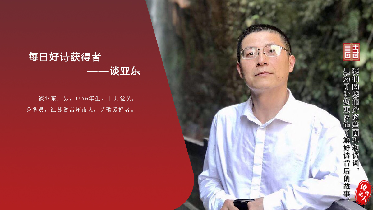 谈亚东 男,1976年生,江苏常州武进人,中共党员,公务员,诗词爱好者。