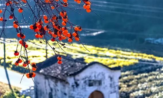 水上渔舟晚,山坡柿子红。