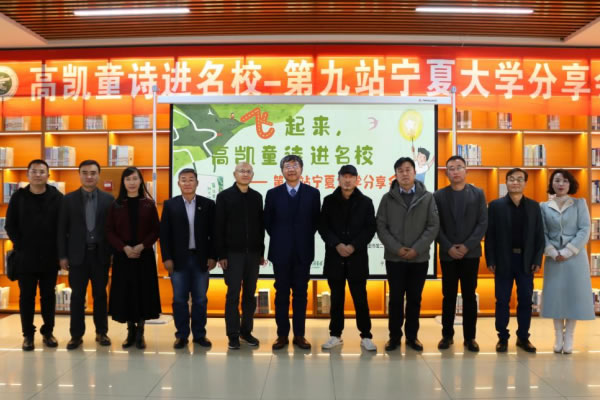 经过近一个月的期待,面向小学、中学和大学校园的“飞起来,高凯童诗进名校”系列阅读公益分享活动,今天终于走进了我向往已久的宁夏大学。至此,我的诗歌推广完成了一个“童诗版陕甘宁”路线图。第九站和第十站之所以选择在银川举行,不说客套话也不说恭维话,主要有以下两个因素: