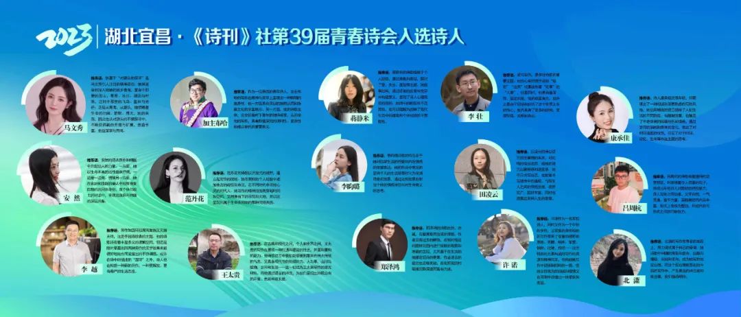 非常荣幸能够入选《诗刊》社第39届青春诗会。感谢《诗刊》社的精心组织,长期以来采取多种举措,发掘发现、培育培养优秀青年诗人,也感谢各位评委老师的辛勤劳动、公正评判。青春诗会是当代诗歌界的黄埔军校,能够入选是青年诗人的莫大荣耀,也从某种意义上代表了青年诗人正式登上诗歌舞台。我将以此为契机继续努力,深耕诗歌的园地,不断在创作上寻求突破,博采古今中外名家之长,不断攀登诗歌创作新的高峰,为繁荣社会主义文艺、建设社会主义文化强国、创造中华文明新形态,做出自己作为新时代青年诗人应有的贡献。