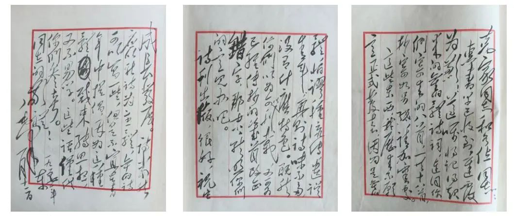 ——三张朱丝栏八格纸的一封信。是毛泽东写给“克家同志和各位同志”的亲笔。信上说,“记得起来的旧体诗词”,连同“你们寄来的八首”,“一共十八首”,寄上。信上说,“《诗刊》出版,很好,祝它成长发展。”