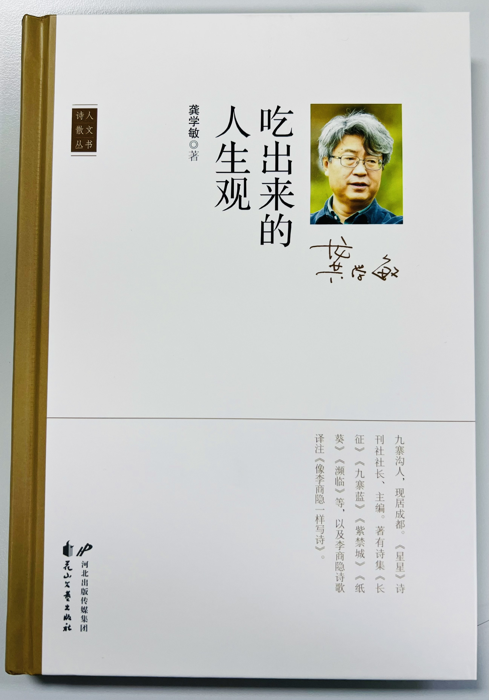 其中,《星星》诗刊主编龚学敏的新作《吃出来的人生观》收录其中。龚学敏是九寨沟人,他的诗歌从那片土地上生发,他的散文也因此而茁壮。在《吃出来的人生观》中,共26篇关于他家乡美食的散文,比如,洋芋烧鸡、搅团、操操饭、火烧馍……除了写食物之美,龚学敏更详解食材来源、烹制手法、人生哲理、文化意义,耐人寻味。