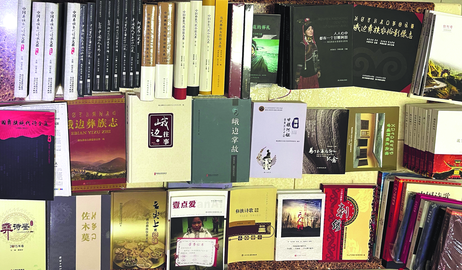 伴随着一张张扶贫表彰奖状的,是新增的厚厚十几部上千万字的正式出版文集。个人诗集《诡异的虎词》荣获第八届四川省少数民族文学创作优秀汉文作品奖。这些编选的图书,除了几本地方志,不出自任何人的约稿,而是符合他心中“展现当代彝族文学文化的成果”的使命。