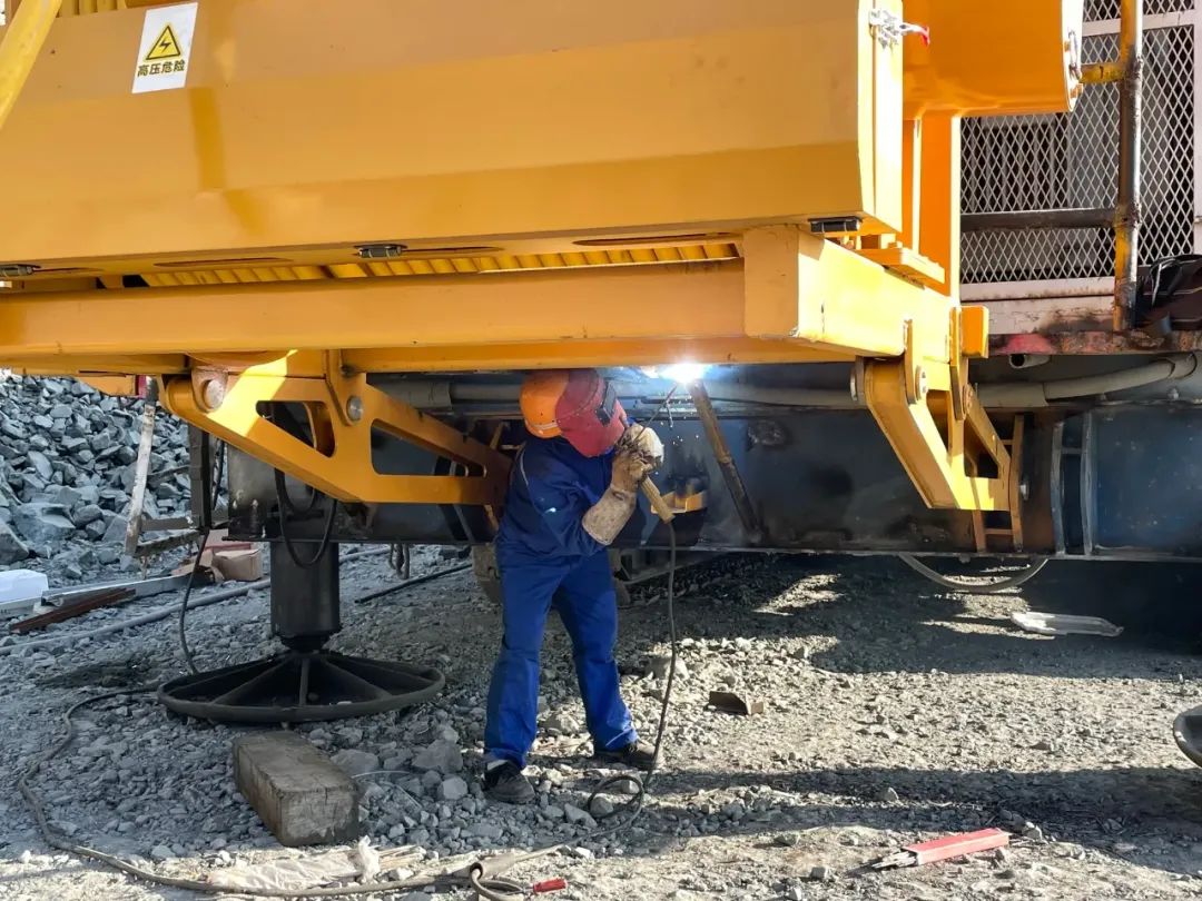 焊枪呲呲喷溅火花,太阳一点点挪到正中,但阳光始终透不下来,粉尘在空中飞扬,笼罩整座矿山,像给人眼套了一层灰蒙蒙的滤镜。气温却很高,二月初的天气,恍惚有了夏天的感觉。“矿山夏天可难受,(体感)温度大概有5、60度,”温馨形容,汗水能流得像条小溪。但矿上规定,工作服和安全帽是绝对不能脱下的,她就往背后塞一条毛巾,汗水浸湿了,抽出来再换一条。