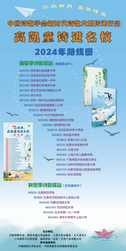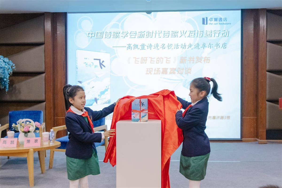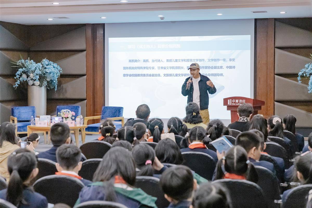 此次分享会,是中国诗歌学会新时代诗歌火炬传递行动——高凯童诗进名校活动。高凯与小读者进行分享,并与著名儿童文学作家萧袤、林彦展开对谈。来自武汉市育才第二小学的百余名师生、家长参与活动。