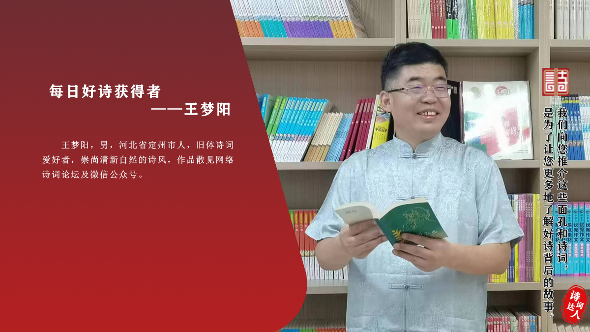 王梦阳 男,河北省定州市人,旧体诗词爱好者,崇尚清新自然的诗风,作品散见网络诗词论坛及微信公众号。