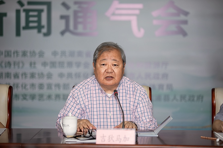 吉狄马加在致辞中表示,屈原作为一位伟大的浪漫主义、爱国主义诗人,他的诗篇已成为中华民族诗歌宝库中非常重要的组成部分,屈原的诗歌具有强大的主体性,抒情性很强,蕴含着很深的哲理叩问,尤其是他的爱国诗篇,不仅在中国诗歌史上,在世界诗歌史上也占有重要位置。在溆浦举办屈原爱国怀乡诗歌节意义非凡,有利于在实现第二个百年奋斗目标的新征程中进一步凝聚民族力量,更好地高举爱国主义旗帜,对于向伟大历史先贤致敬具有非常重要的现实意义。溆浦这片土地滋养了这样一位伟大的爱国主义诗人,当下的写作者都应当到中国诗歌的源头去看一看,期待更多的中国诗人来到怀化溆浦,来到屈原诗篇中的现实地理坐标,感受溆浦的人文历史和山川风貌,陶冶净化诗心,写出更多见证伟大时代的优秀作品。