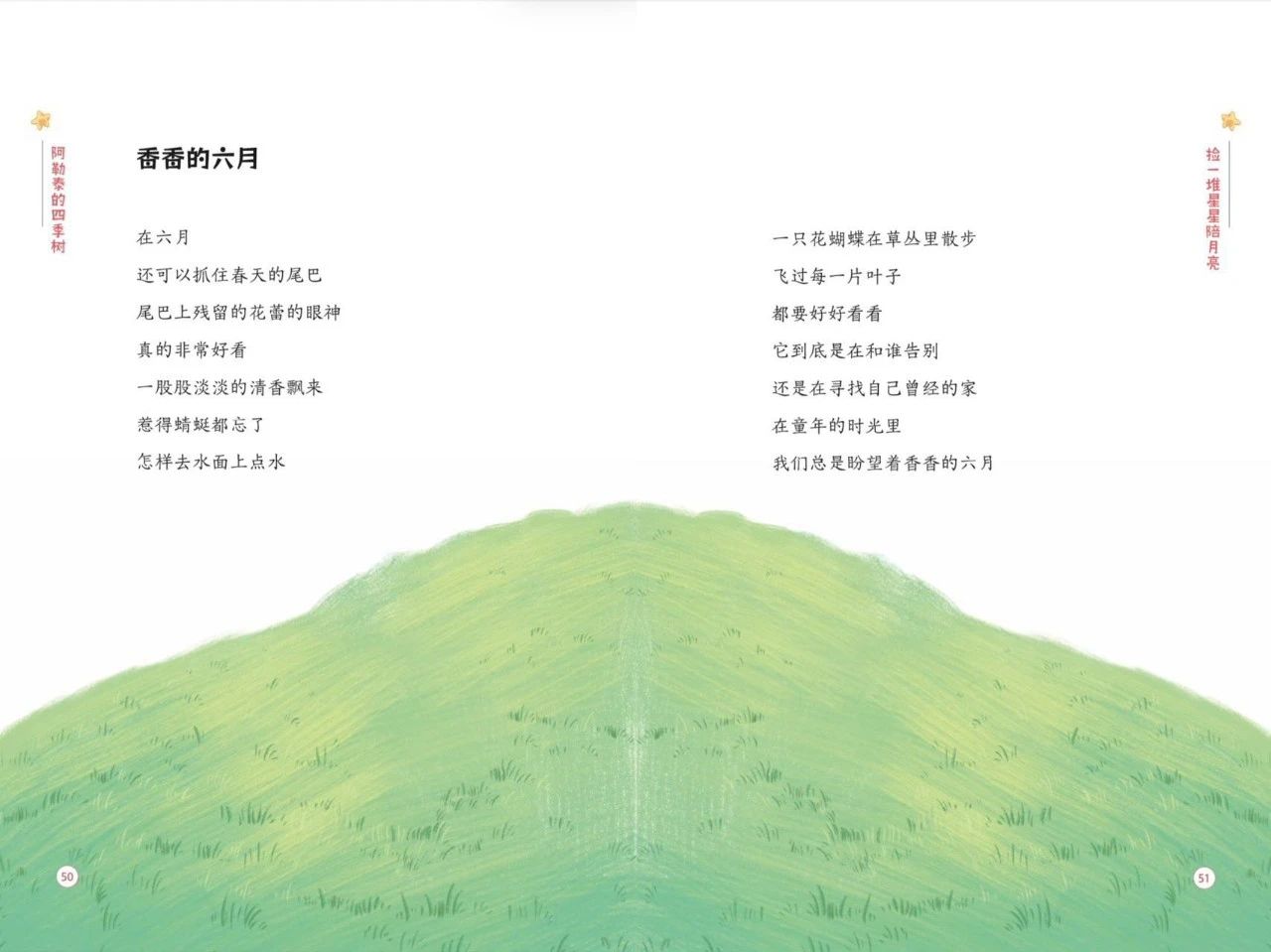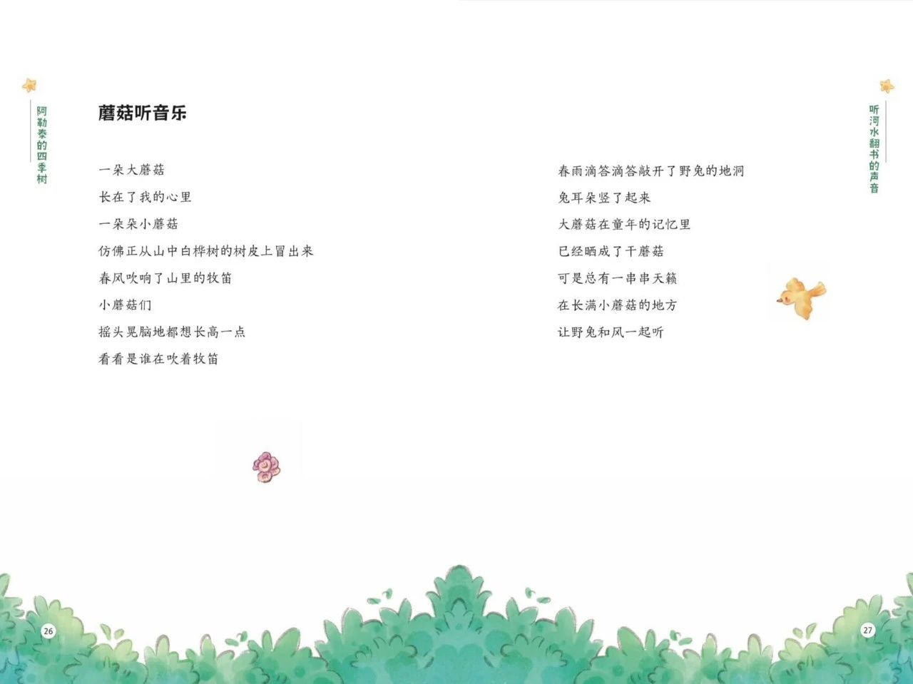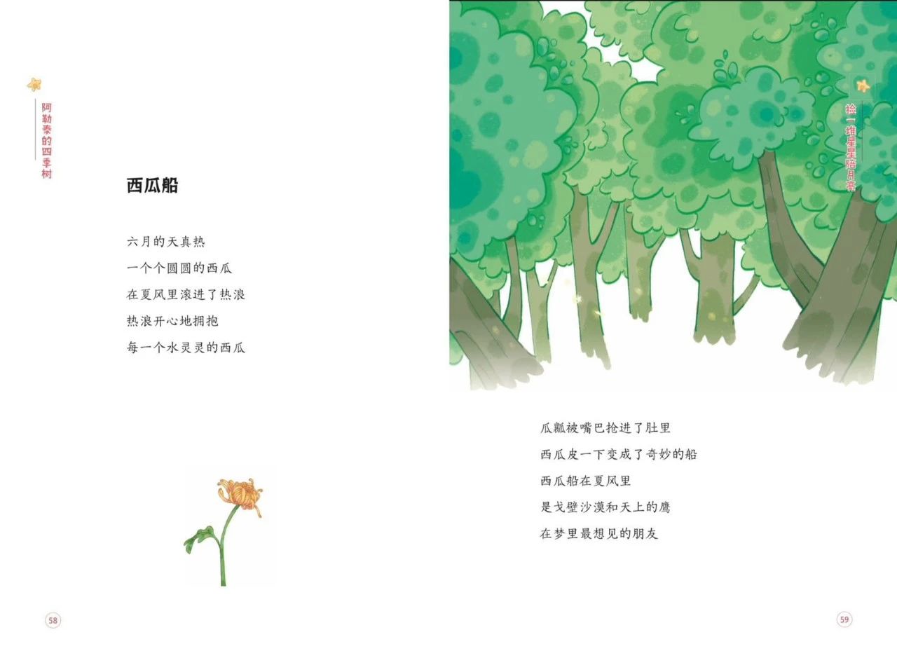 这是一部描写新疆阿勒泰地区的儿童诗集。诗歌以四季为主线,以动植物和儿童的生活为主题,讲述了飞鸟、游鱼、星夜、草原等有趣的故事。作者用清新自然的笔触、妙趣横生的语言为小读者呈现了一幅纯净至美、色彩绚丽的画卷。