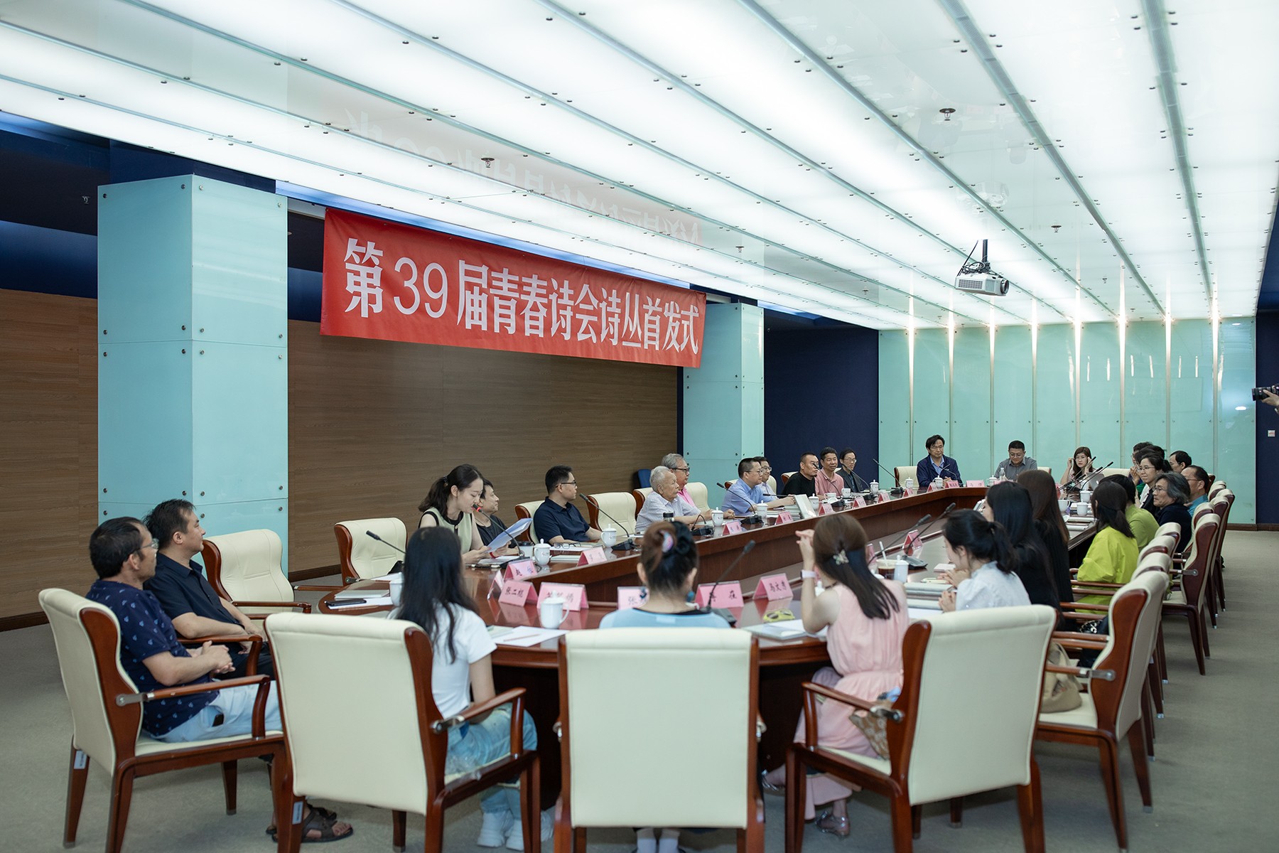 6月28日上午,第39届“青春诗会”诗丛首发式在北京中国现代文学馆举办。中国作家协会原副主席、书记处书记、中国作家协会诗歌委员会主任吉狄马加,著名评论家、北京大学中文系教授谢冕,《诗刊》社主编李少君,鲁迅文学院常务副院长徐可,《人民文学》杂志社副主编陈涛,诗人、翻译家树才,中央民族大学文学院教授敬文东,北京大学中文系副教授秦立彦,《三峡文学》执行主编毛子,河南宏光国学博览馆馆长李志军,开封市诗歌学会会长李双,《中国作家》副编审赵依,《当代·诗歌》执行副主编李义洲,中国石化作协副主席马行,重庆市作协副主席张远伦,陕西省青年文学协会主席马慧聪,长江文艺出版社诗歌中心编辑王成晨,《山西文学》编辑张二棍,《北京文学》编辑侯磊,《民族文学》编辑张媛媛,出版人高秀芹、王晓笛以及第39届“青春诗会”学员代表李壮、许诺、马文秀、康承佳、北潇,往届学员代表蒋在、苏笑嫣、江汀、张慧君等嘉宾参加活动。活动由中国诗歌网新媒体部主任罗曼主持。